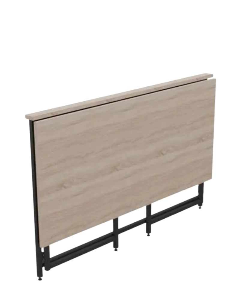 Masa pliantă FOLD poate fi folosită în bucătărie, în gospodărie sau ca loc de lucru pentru elevi. Procesul simplu de transformare vă va economisi timp și spațiu. Blatul mesei este din PAL 1000*600 mm, picioarele sunt din cadru metalic cu reglare pe înălțime.