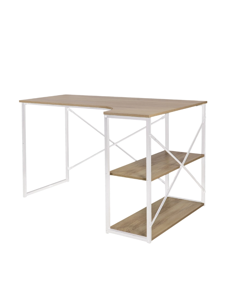 Pe rafturile încăpătoare puteți depozita cu ușurință obiecte esențiale, documente sau accesorii de birou.