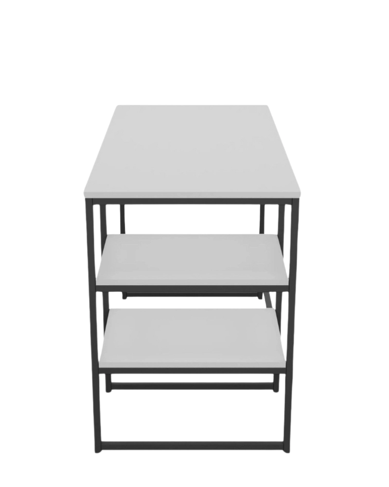 JET este un birou pe suporturi metalice. Blatul mesei este realizat din PAL 1190*550mm, iar rama este din metal vopsit negru. Există două niveluri pentru depozitarea rechizitelor de birou și a altor lucruri
