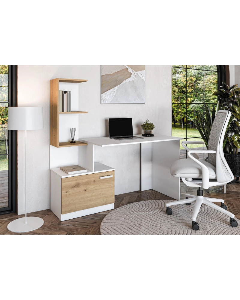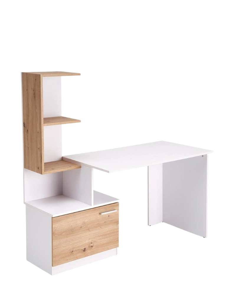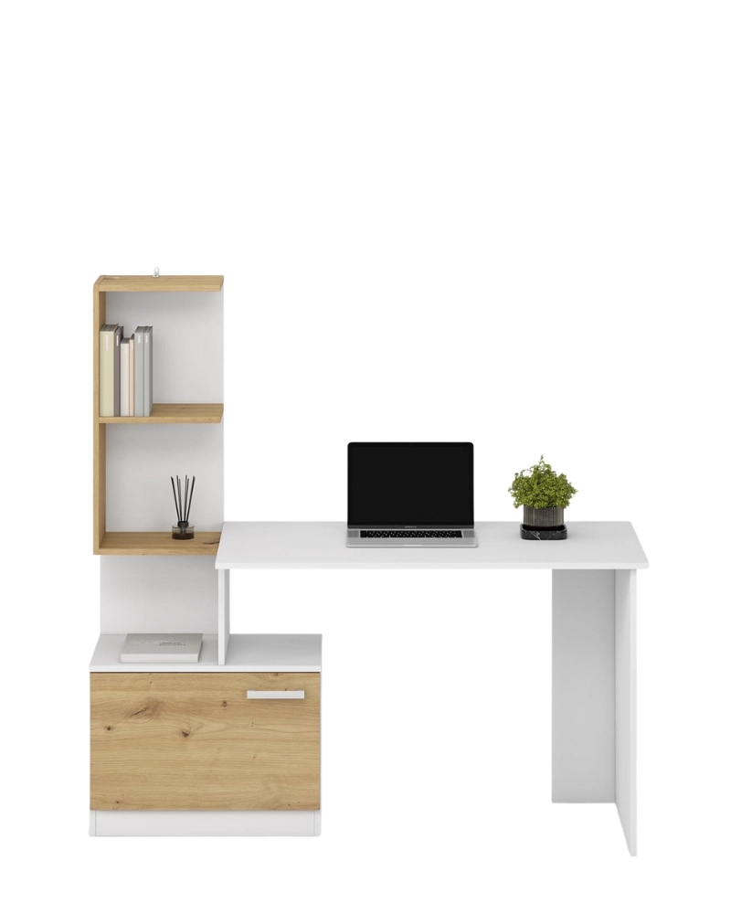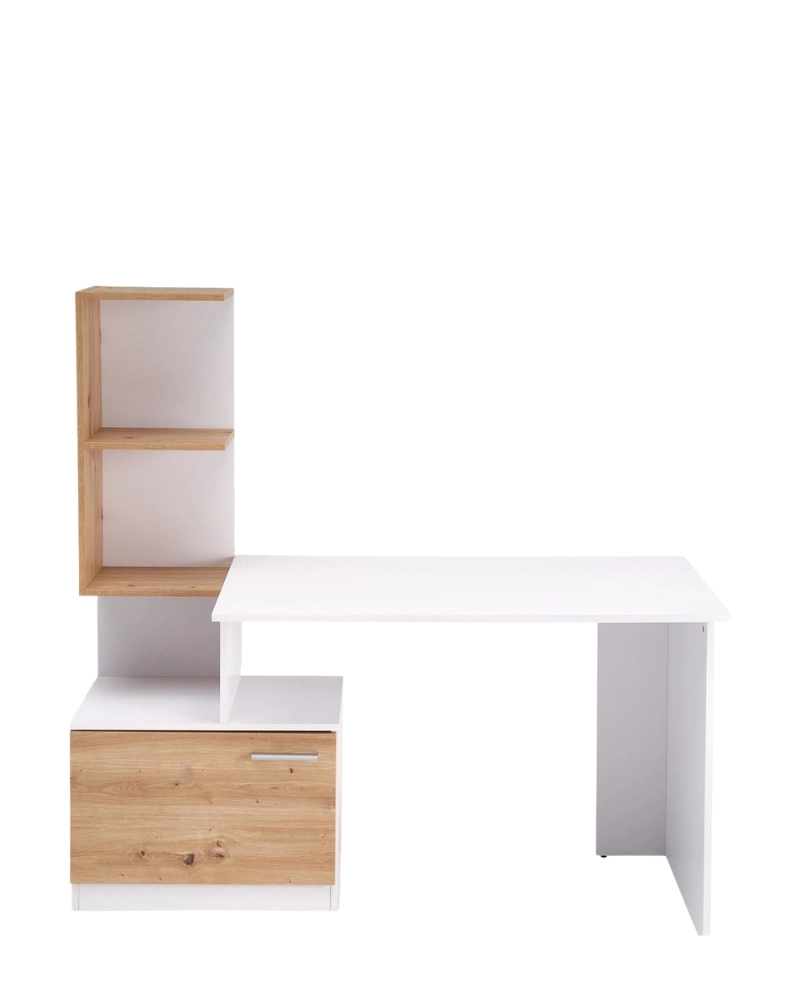Gratuit pentru comenzile de peste 1000 lei.Masa MISO este o masă de scris modernă, în stil minimalist, realizată din plăci aglomerate laminate de culoare albă și „stejar artizan”. Se remarcă prin forma simplă și tonurile deschise, ceea ce o face ideală pentru camerele tinerilor, birouri sau zone de lucru.