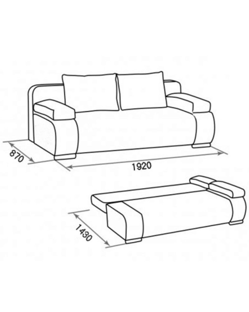 Canapeaua Riga este o canapea pliabilă compactă și modernă, cu spațiu de depozitare. Dimensiunile sale permit amplasarea ei în camere mici.