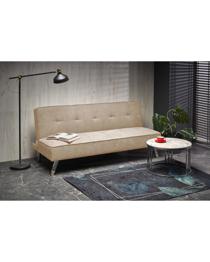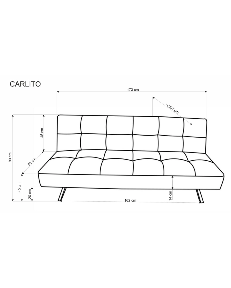 Canapea plianta Carlito pentru living sau camera copiilor. Tapițerie - țesătură jacard gri. Cadru de bază metalic sunt vopsit în gri.