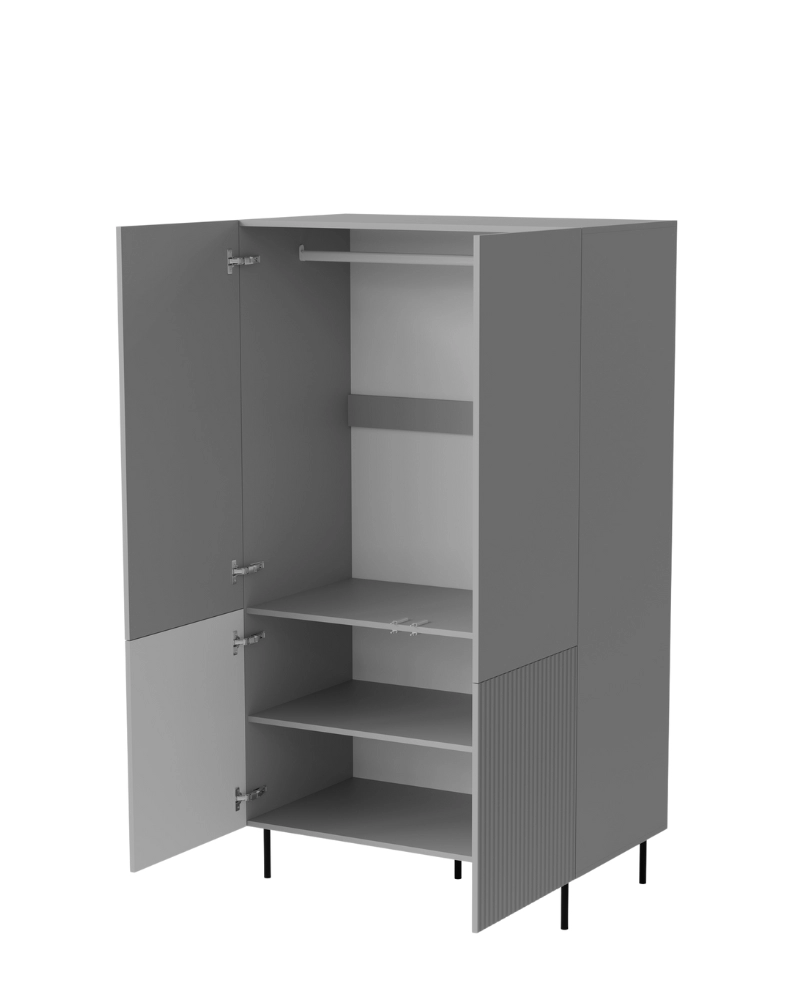 Gratuit pentru comenzile de peste 1000 lei.Dulapul Asensio S-1 de la fabrica poloneză Halmar - constă într-o parte cu patru uși. Modelul este caracterizat de o parte frontală canelată. Corpul este fabricat din PAL laminat în culoarea „gri”, fronturile sunt fabricate din MDF laminat în culoarea „gri”.
