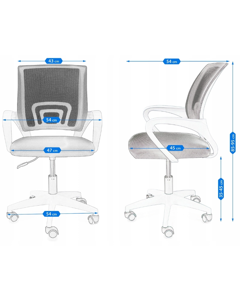 Spătarul perfect conturat combinat cu șezutul moale oferă un confort deosebit, în timp ce baza stabilă de cinci stele finisată cu roți mici din plastic oferă o stabilitate deosebită și protejează suprafața de zgârieturi. Scaunul are un actuator care vă permite să reglați înălțimea scaunului pentru a se potrivi nevoilor dvs.