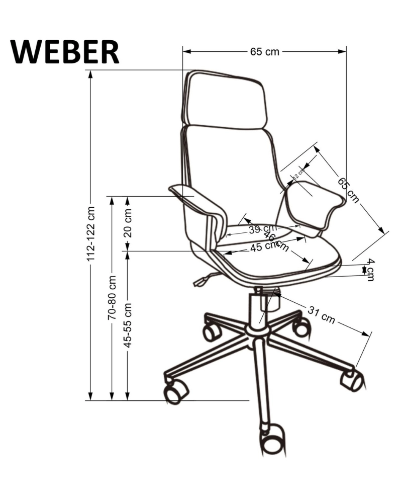 Gratuit pentru comenzile de peste 1000 lei.Scaunul de birou Weber de la fabrica poloneză Halmar este un fotoliu pivotant extrem de elegant, care reprezintă o soluție excelentă pentru interioarele clasice și moderne. Acesta este caracterizat de un stil simplu și versatil, care se adaptează cu succes la o mare varietate de compoziții. Fotoliul este, de asemenea, o piesă de mobilier foarte confortabilă, ceea ce este foarte important în cazul muncii de birou. Scaunul pivotant de la Halmar va fi potrivit atât la birou, cât și acasă, datorită designului său simplu. Dimensiunile reduse ale scaunului îl fac mobil și compact.