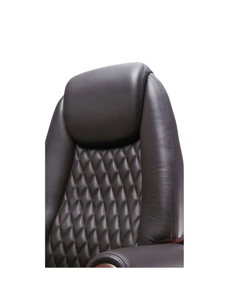 La proiectarea fotoliului s-a acordat o atenție deosebită ergonomiei acestuia. Spătarul curbat urmărește cu precizie curbele naturale ale coloanei vertebrale umane, oferind un suport lombar complet. Există suporturi laterale generoase pentru susținerea laterală a spatelui. Partea superioară a spătarului este prevăzută cu o tetieră care ajută la reducerea tensiunii asupra coloanei cervicale în timpul șederii prelungite. Cu alte cuvinte, fiecare detaliu al acestui model este conceput pentru a asigura confortul în timpul unei zile lungi de lucru.