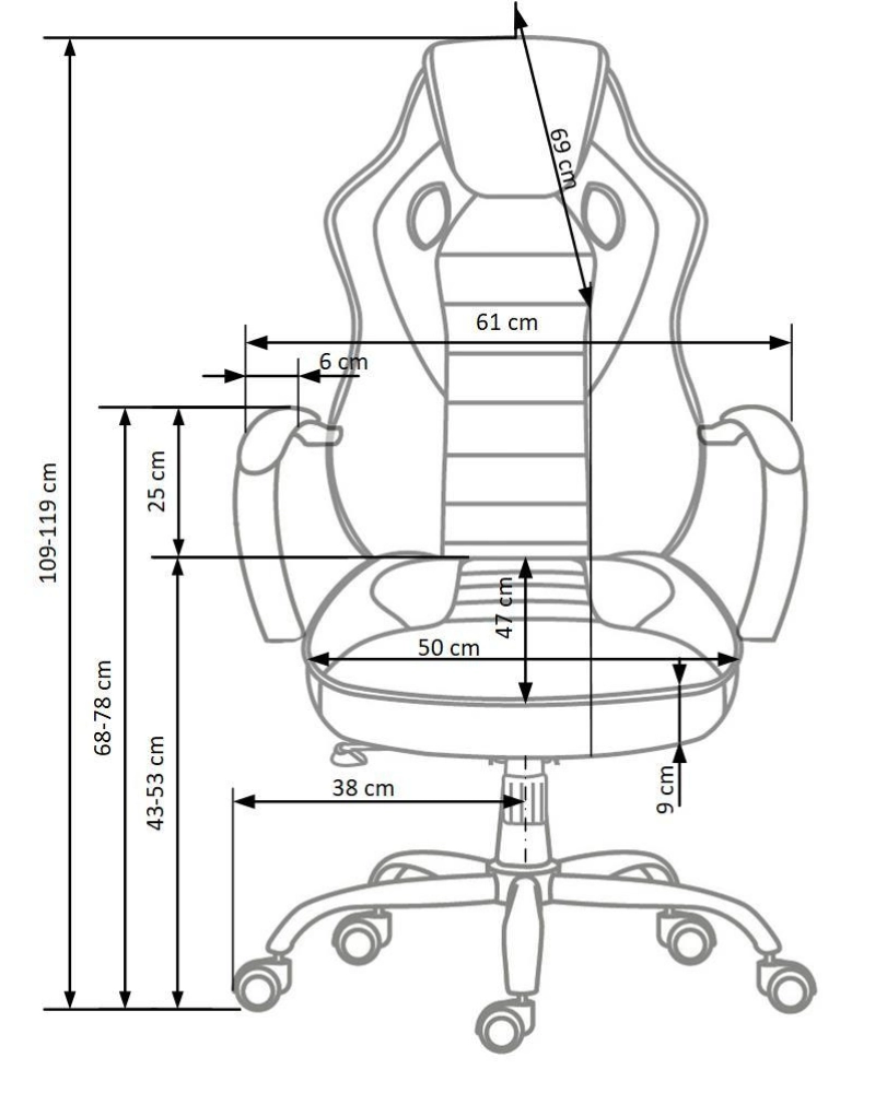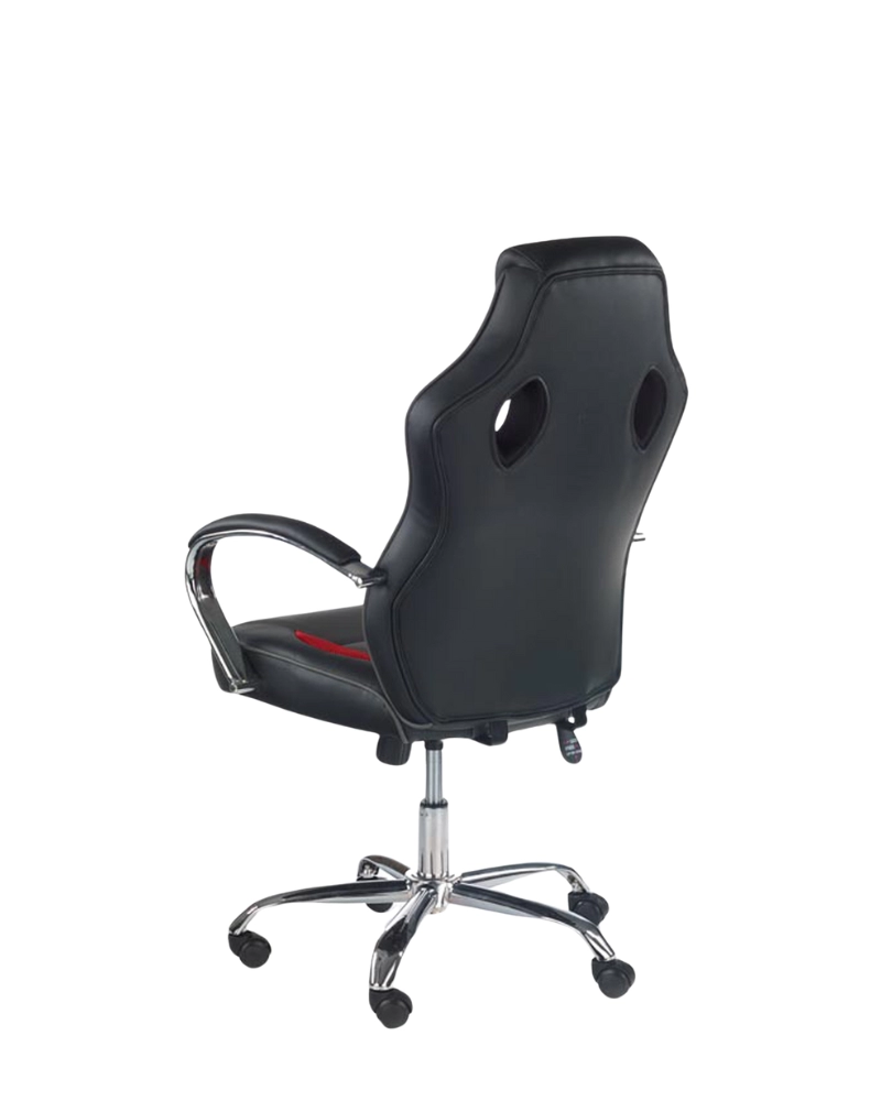 Fotoliul este tapițat cu piele eco. Baza este confecționată din metal cromat și are rotile din plastic.