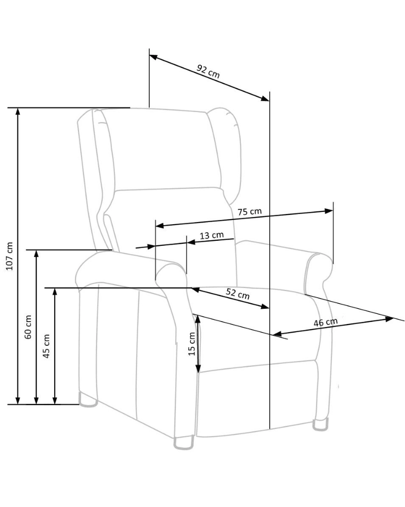 Înălțime, inclusiv spătarul: 107 cm
