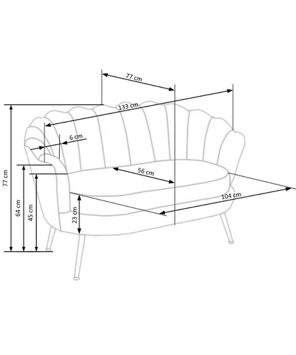Canapea confortabilă și practică pentru sufragerie, dormitor sau hol. Ca material de tapițerie este folosită țesătură de catifea moale și plăcută la atingere. Spatarul lat si cotierele inalte ofera confort maxim.