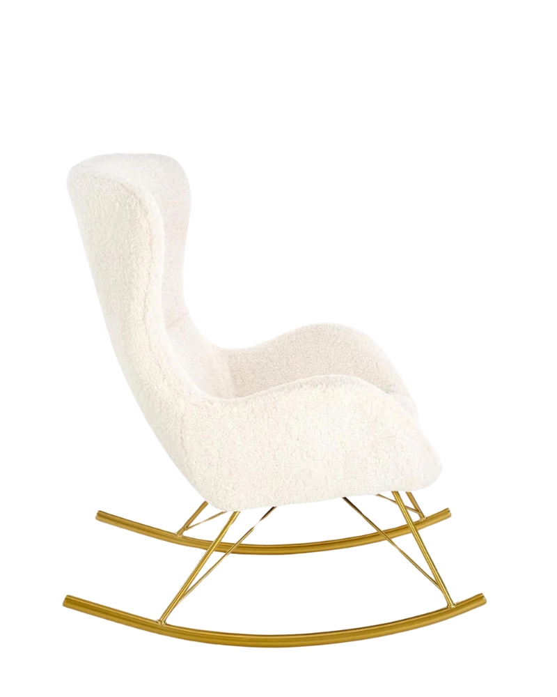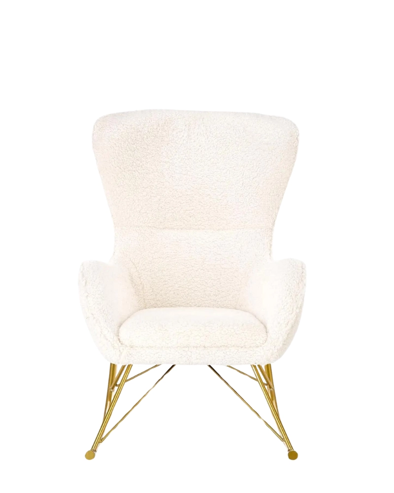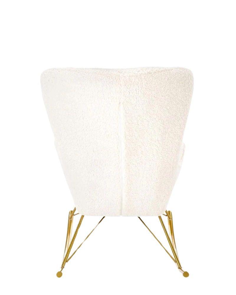 Glisierele metalice de culoare aurie se armonizează cu țesătura bouclé crem, creând aspectul elegant al fotoliului Liberto.