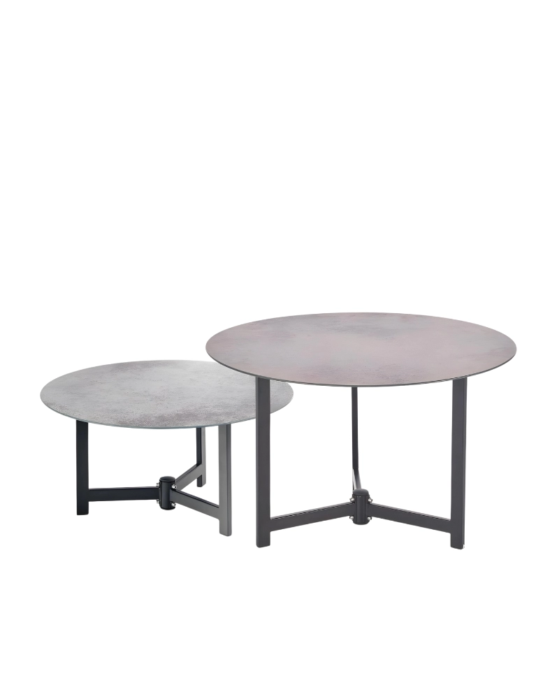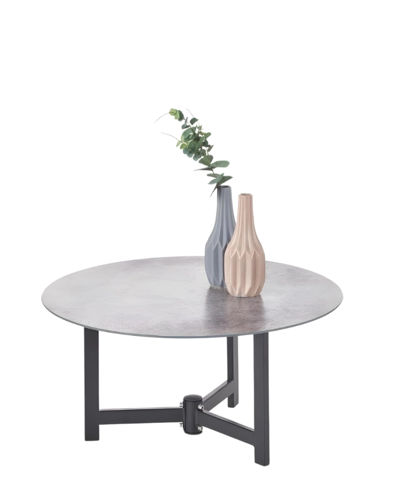 Gratuit pentru comenzile de peste 1000 lei.Măsuțele de cafea Twins gri/maro sunt un set elegant de 2 măsuțe de cafea de la compania poloneză Halmar, cu un blat rotund din sticlă călită în imitație de piatră gri și maro. Cadrul este realizat din oțel vopsit în negru.