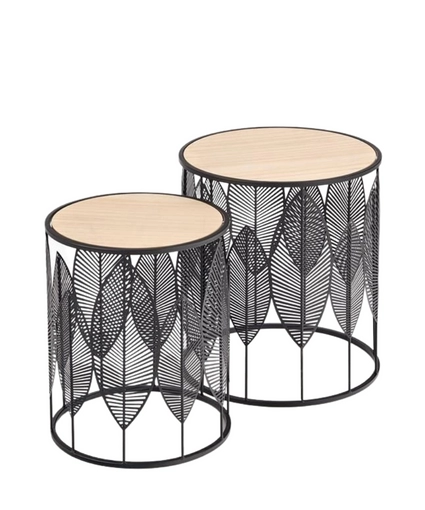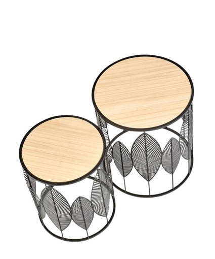 Setul de măsuțe de cafea FOLLA este un set de măsuțe de cafea traforate de la compania poloneză Halmar, format din două mese cu blat rotund din MDF laminat de culoare naturală. Picioarele sunt realizate din oțel vopsit.