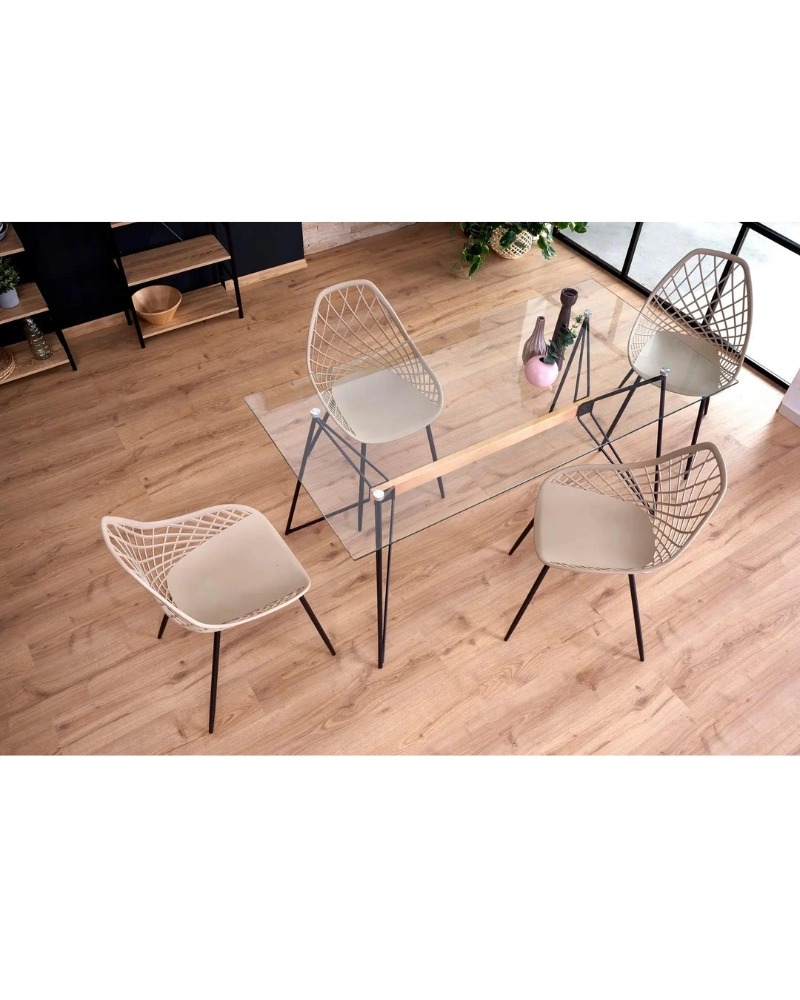 Fabricată din materiale de înaltă calitate, masa ALLEGRO are un blat dreptunghiular din sticlă călită, care adaugă lejeritate și rafinament. Baza piciorului este realizată din metal acoperit cu pulbere pentru durabilitate și un aspect modern.