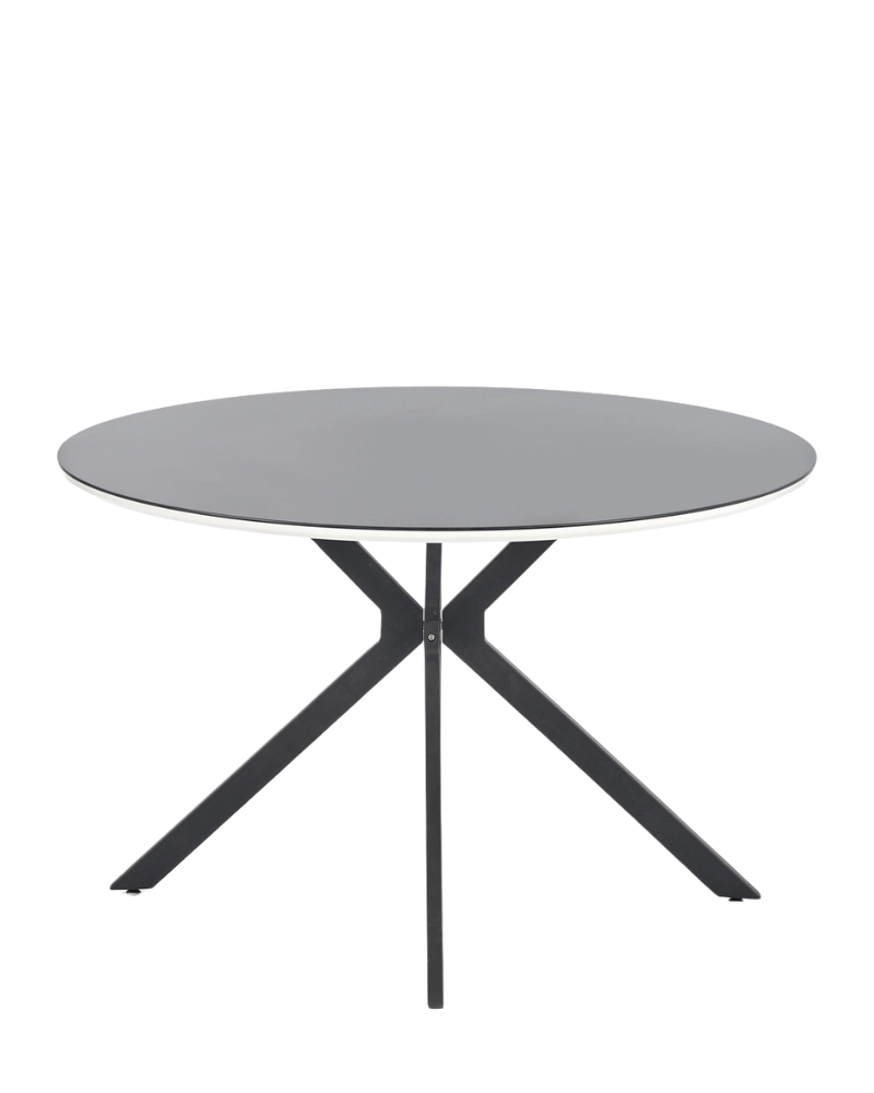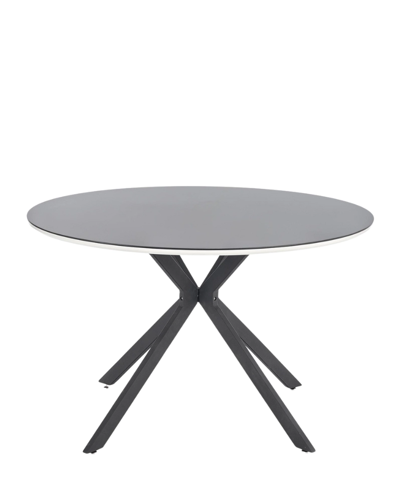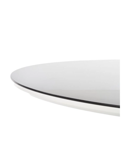 Gratuit pentru comenzile de peste 1000 lei.Masa AVELAR este o masă de sufragerie compactă de la compania poloneză Halmar, cu un blat rotund din sticlă călită de culoare neagră, pe MDF lăcuit alb și un picior metalic vopsit cu pulbere în culoare neagră.