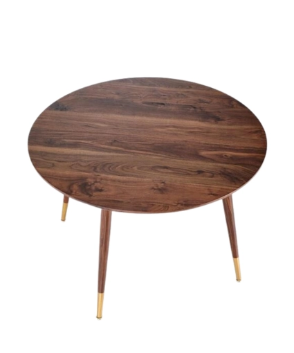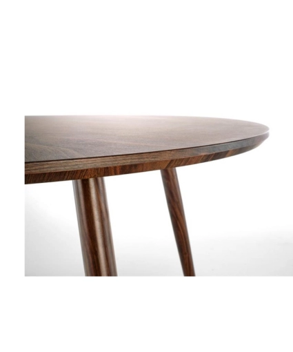 Combinația de nuc și auriu din masa DOMENICO îi conferă un design exclusivist. Blatul mesei din MDF imită perfect structura lemnului natural.