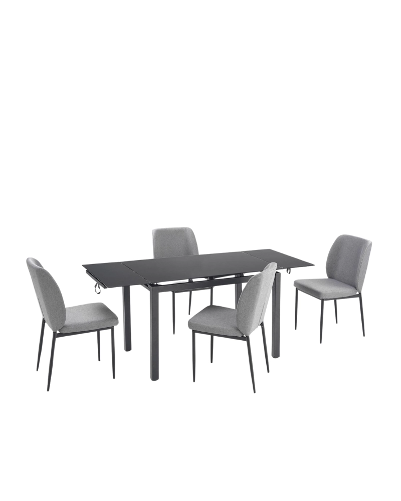 Gratuit pentru comenzile de peste 1000 lei.Setul original de masă cu un blat textil și patru scaune tapițate va fi un element indispensabil pentru orice bucătărie sau sală de mese în stil modern sau minimalist. Dispunerea suplimentară a blatului mesei va permite așezarea mai multor persoane la masă și extinderea spațiului funcțional. Cadrul mesei este fabricat din oțel acoperit cu pulbere, blatul mesei este fabricat din sticlă călită. Cadrul scaunelor din set este realizat din oțel acoperit cu pulbere, tapițeria scaunelor este realizată din țesătură de înaltă calitate.