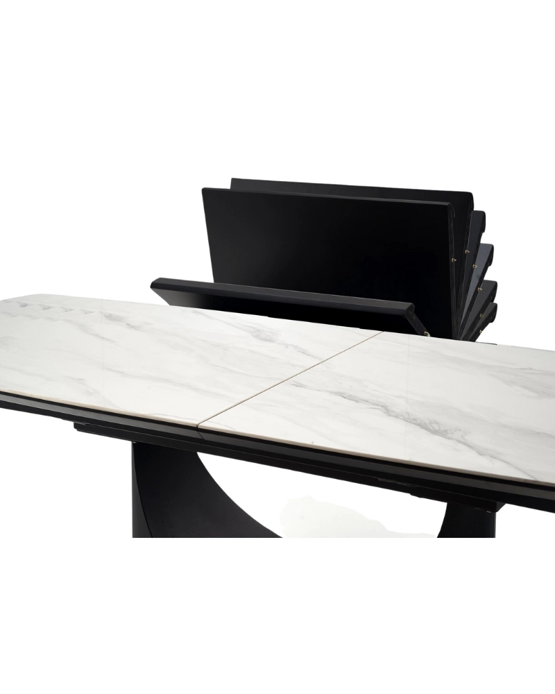 Gratuit pentru comenzile de peste 1000 lei.Masa OSMAN HALMAR este o masă spectaculoasă pentru interiorul unei sufragerii moderne de acasă, care atrage atenția cu designul său original și performanța de înaltă calitate. Designul mesei include un cadru și un blat ceramic, a cărui lungime în poziție desfășurată este de 220 cm și vă permite să găzduiți 10 persoane.