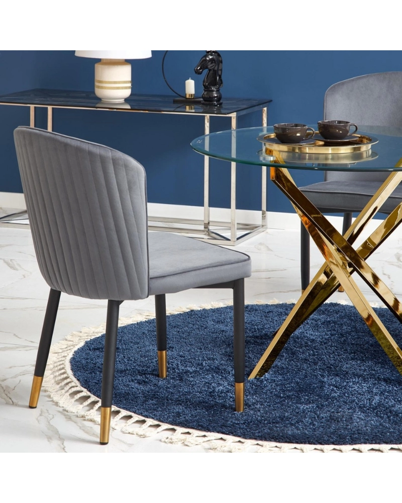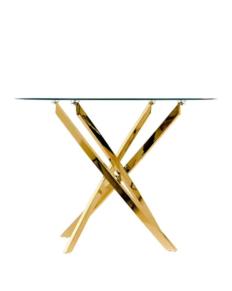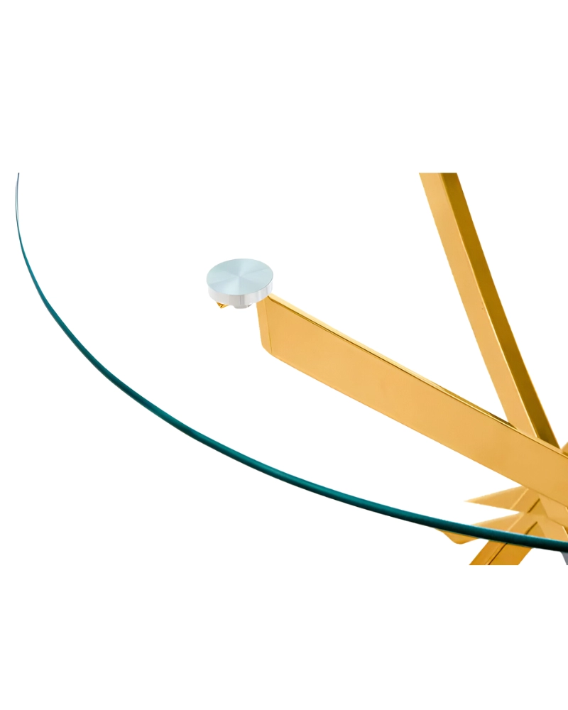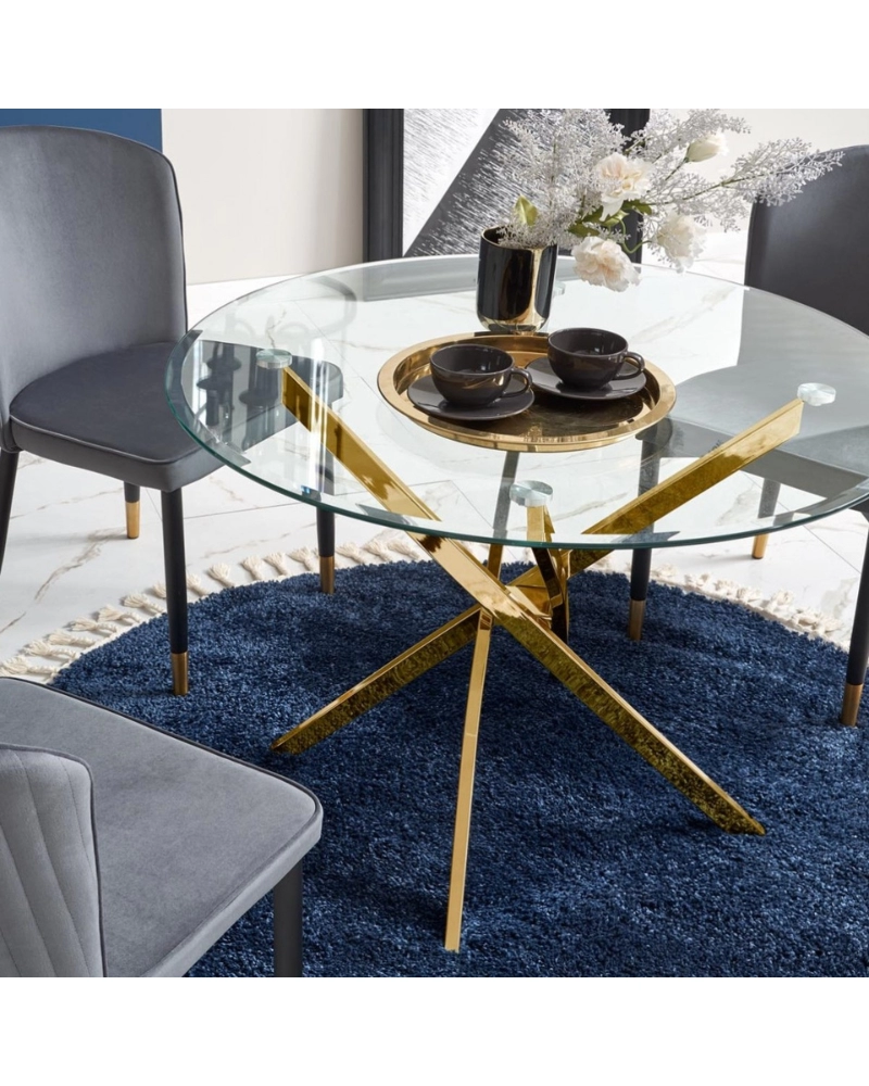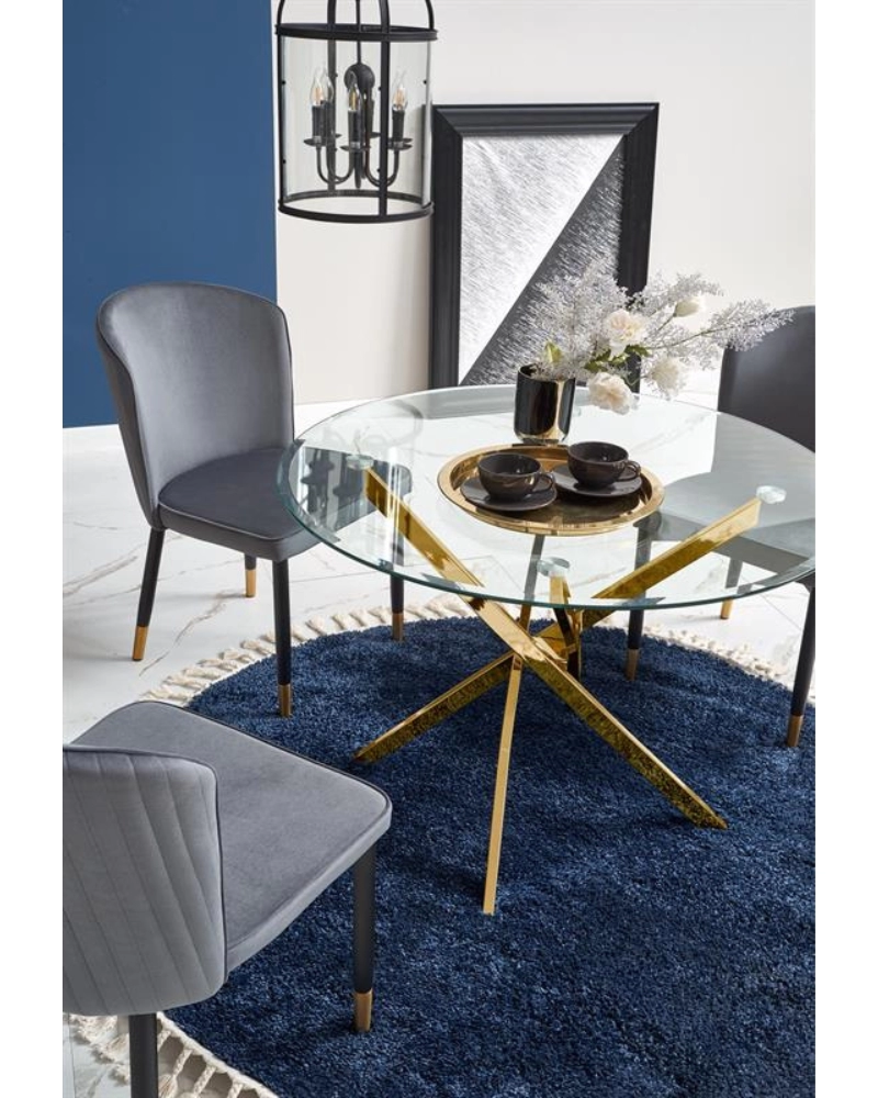 Gratuit pentru comenzile de peste 1000 lei.Masa din sticlă RAYMOND (auriu) este o masă de sufragerie compactă fabricată de Halmar în Polonia, cu un blat rotund din sticlă transparentă călită. Cadrul este realizat din metal cromat într-o nuanță aurie.