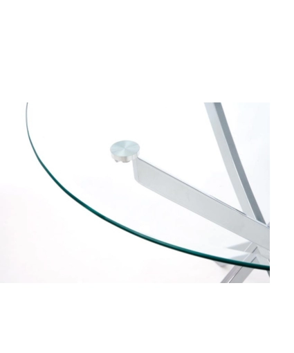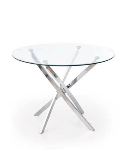 Gratuit pentru comenzile de peste 1000 lei.Masa din sticlă RAYMOND este o masă de sufragerie compactă fabricată de Halmar în Polonia, cu un blat rotund din sticlă transparentă călită. Cadrul este realizat din metal cromat.