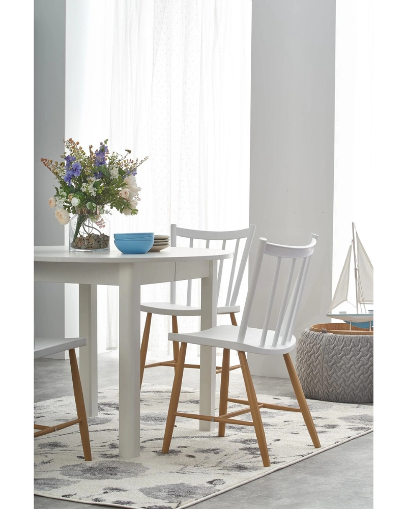 Gratuit pentru comenzile de peste 1000 lei.Masa RINGO este o masa extensibila universala cu blat rotund din PAL laminat si cadru din MDF laminat alb.