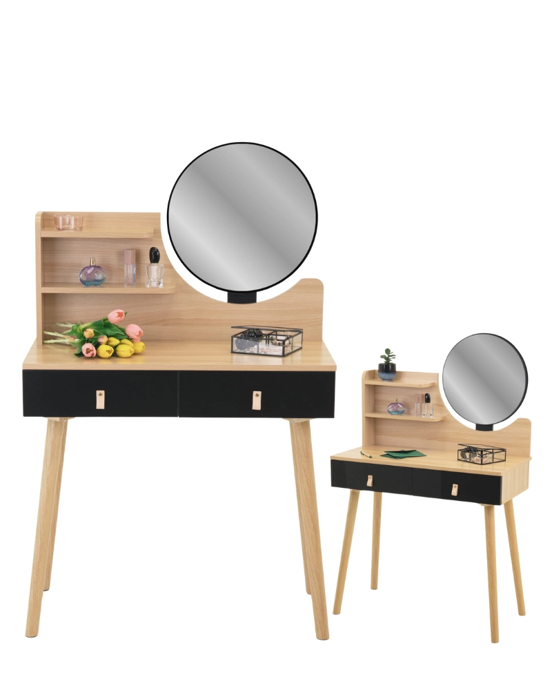 Piesa de mobilier este perfectă pentru dormitor, fiind un loc practic pentru machiaj, coafură, activități zilnice de îngrijire, precum și pentru a scrie o scrisoare sau a depozita o varietate de obiecte mici.