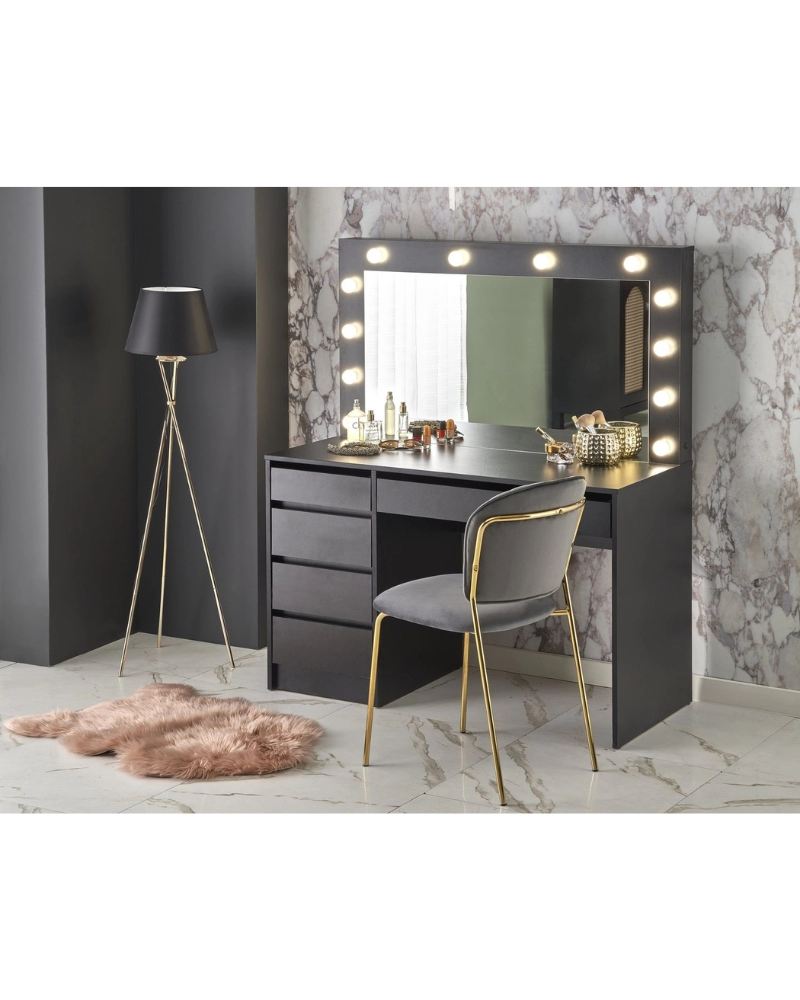 Gratuit pentru comenzile de peste 1000 lei.HOLLYWOOD XL este o piesă de mobilier irezistibilă, care se va potrivi perfect într-un dormitor, în camera doamnelor, în salonul de înfrumusețare sau în dressing. Această măsuță de toaletă atrage atenția prin designul său elegant și de înaltă calitate, ceea ce o face un accesoriu indispensabil pentru îngrijirea și crearea unui mediu confortabil.