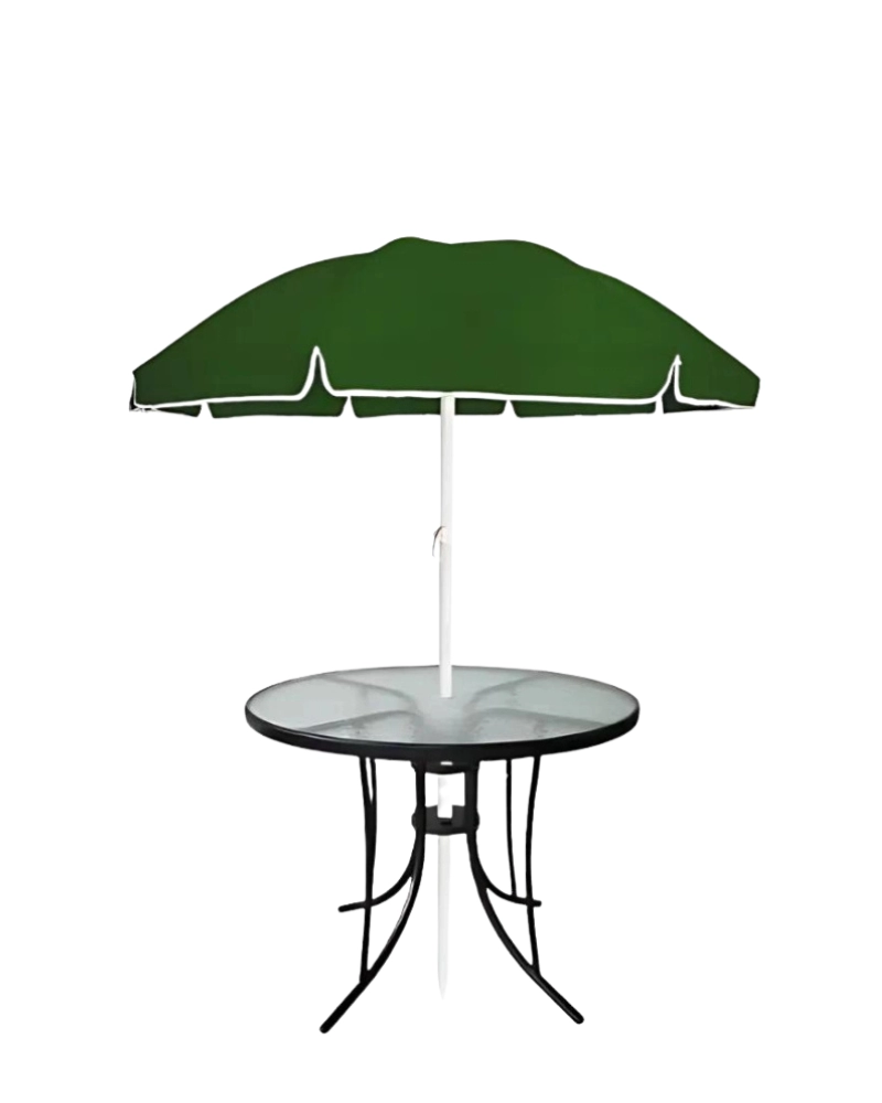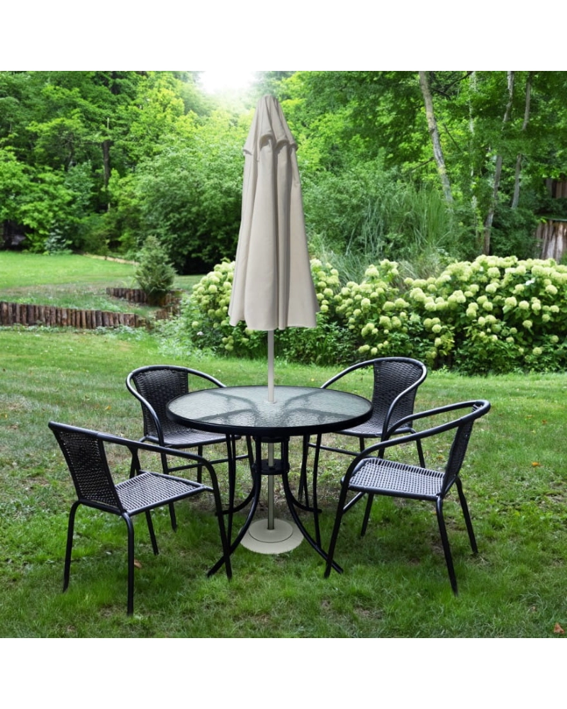 Măsuța de cafea rotundă cu cadru din oțel negru și blat din sticlă groasă combină designul modern și durabilitatea, fiind un accesoriu elegant pentru orice interior, grădină sau balcon