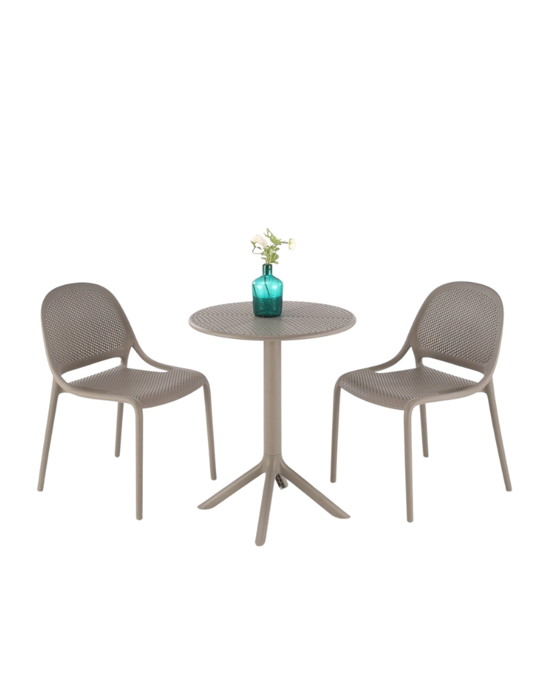 Masa de grădină CALCO HALMAR este o masă elegantă și practică pentru case de la țară, terase, balcoane, locuri de joacă de vară și cafenele, o noutate a anului 2024. Masa este fabricată din polipropilenă și constă dintr-un cadru și un blat rotund de culoare kaki.