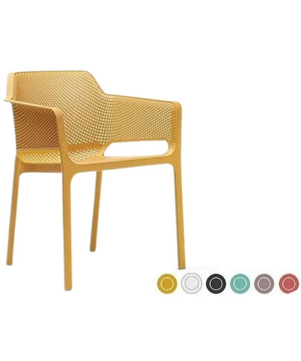 Net - un monobloc din plastic (polipropilenă și fibră de sticlă), cu un model perforat, care este distribuit uniform pe suprafața tridimensională a scaunului. Materialele nu sunt expuse la radiații UV, datorită cărora scaunul își păstrează aspectul original mult timp și nu se estompează la soare.