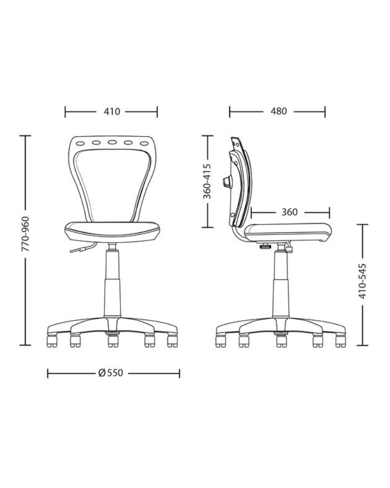 Scaunul Nowy Styl Ministyle GTS are un scaun și un spătar ergonomice, reglarea înălțimii spătarului și a adâncimii scaunului cu șuruburi, tapițerie viu colorată. Piston pneumatic pentru reglarea înălțimii scaunului. Modelul este realizat fără cotiere, elemente din plastic de culoare albă.