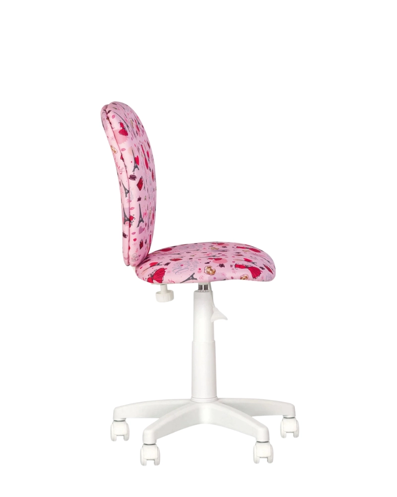 Scaun ergonomic pentru copii Polly GTS alb, cu mecanism de rotire și ridicare. Spătarul este moale, tapițat pe ambele părți cu țesătură și are o curbă anatomică pentru menținerea posturii. Adâncimea scaunului poate fi reglată cu ajutorul unui șurub situat în partea de jos. Acest lucru permite scaunului să crească odată cu copilul. Fotoliu din polipropilenă turnată de culoare albă, roți din plastic, mecanism de ridicare a scaunului.