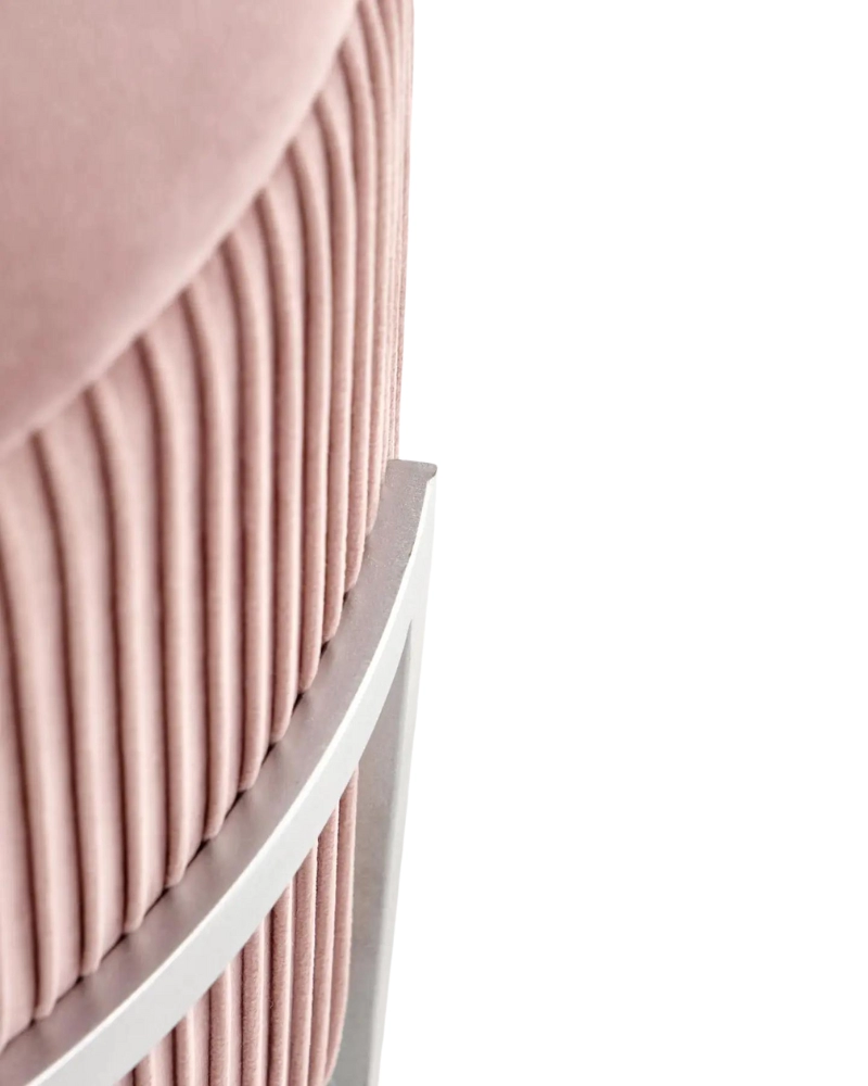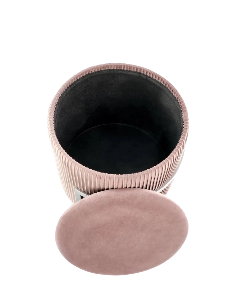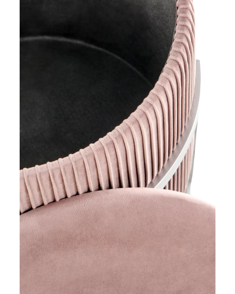 Tapițeria este realizată din țesătură de catifea, iar baza sa din oțel acoperit cu pulbere îi conferă un aspect modern. În interiorul modelului există, de asemenea, un compartiment pentru depozitarea comodă a diferitelor lucruri mici.