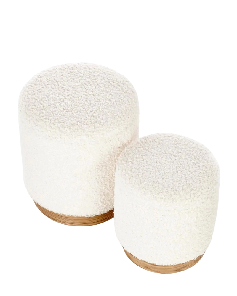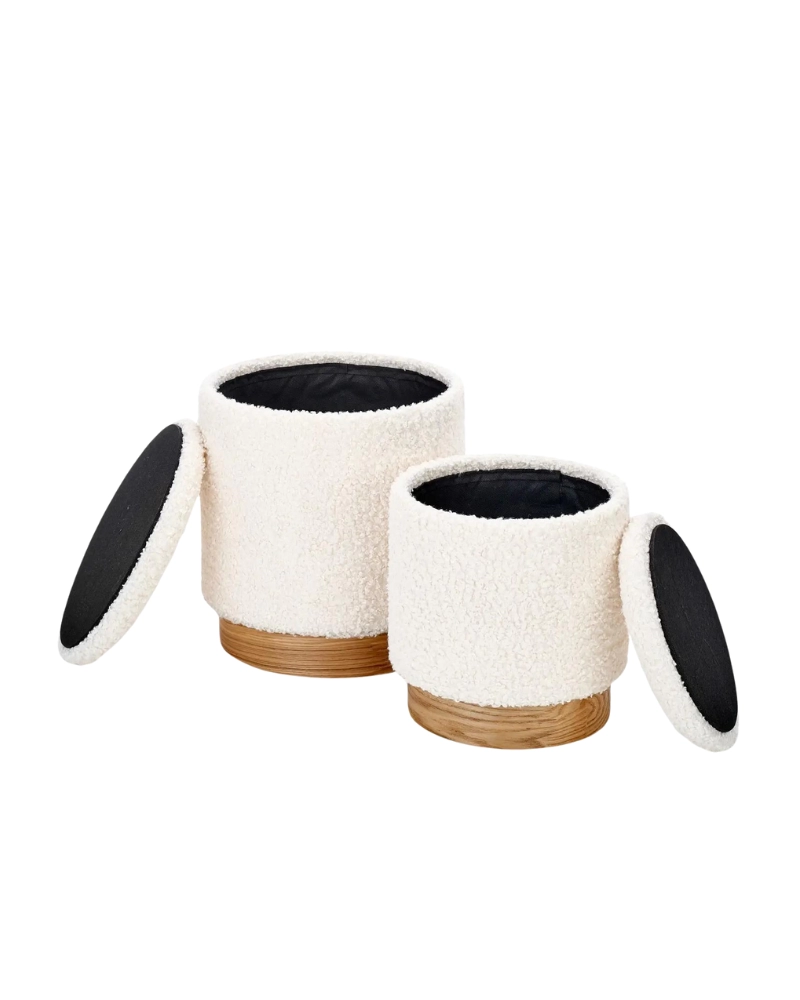 Poufurile Cancun combină designul rafinat și materialele moderne, datorită dimensiunii lor compacte vor arăta adecvat chiar și într-o cameră mică. Poufurile sunt ideale pentru a crea o zonă de relaxare confortabilă atât la birou, cât și acasă. Ambii pufuri au compartimente de depozitare spațioase în care puteți depozita lucruri mici. Poufurile sunt tapițate în țesătură bouclé. Forma rotundă le conferă o anumită moliciune. Pufii sunt montați pe baze de placaj curbat, realizate din furnir natural, ceea ce îi face și mai eleganți.