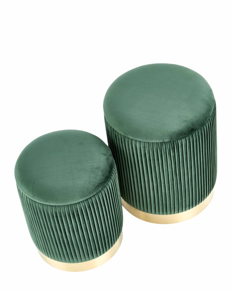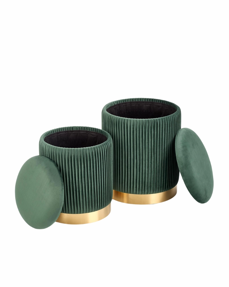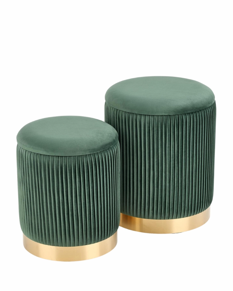 Setul de doi pufuri MONTY este un puf moale și confortabil de la Halmar din Polonia, cu scaune rotunde detașabile și nișe de depozitare în interior. Tapițeria este îmbrăcată într-o țesătură plăcută la atingere. Decorul este realizat dintr-o jantă din oțel cromat auriu. Opțiunea de a plia pufulețul mic în locașul pufulețului mare sporește ergonomia setului.