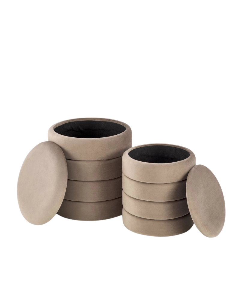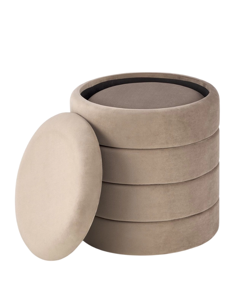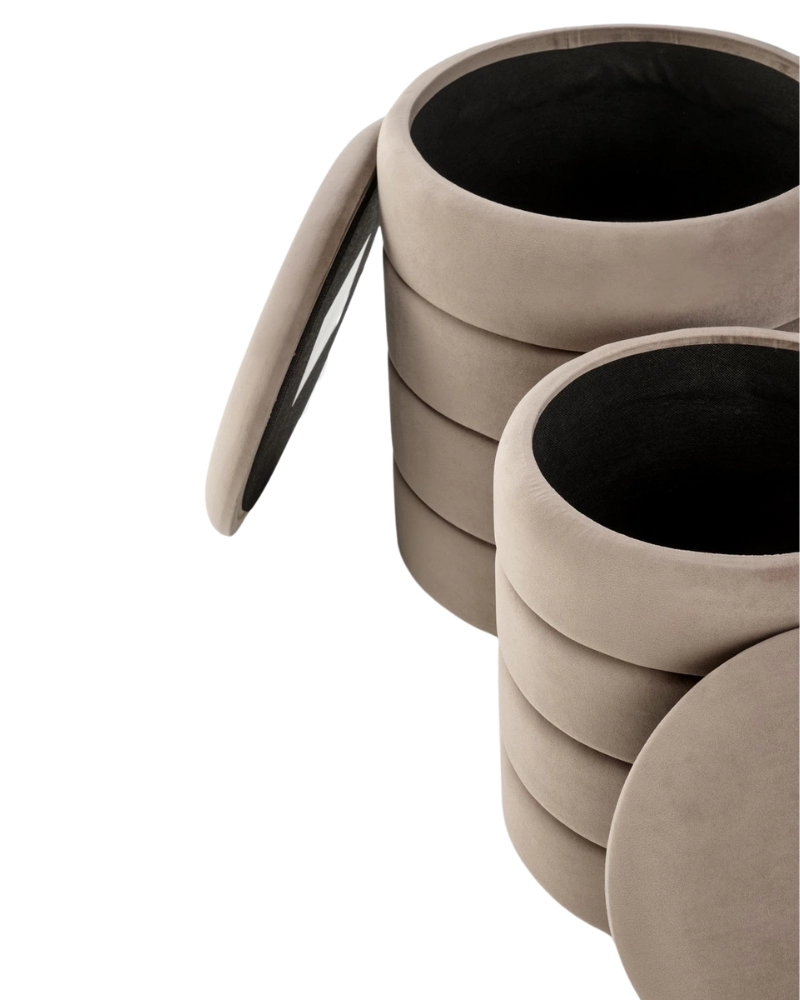 Lucrurile mici și frumoase pentru casă creează întotdeauna o atmosferă specială de confort, veselie sau originalitate, pot adăuga eleganță, farmec și funcționalitate suplimentară interiorului dvs. Prin lucrurile mici din casă puteți determina caracterul proprietarului, starea sa de spirit și hobby-urile sale. Secretul atractivității mobilierului este durabilitatea, stilul și funcționalitatea. Un set original de poufuri va completa perfect interiorul holului dvs., camera copiilor sau va deveni o soluție funcțională de neînlocuit pentru dormitorul dvs. ca o completare a măsuței de toaletă. Unde, de ce și cum - depinde de dvs. să decideți! Pouf rotund cu sistem de depozitare, acoperit cu țesătură velur de înaltă calitate.