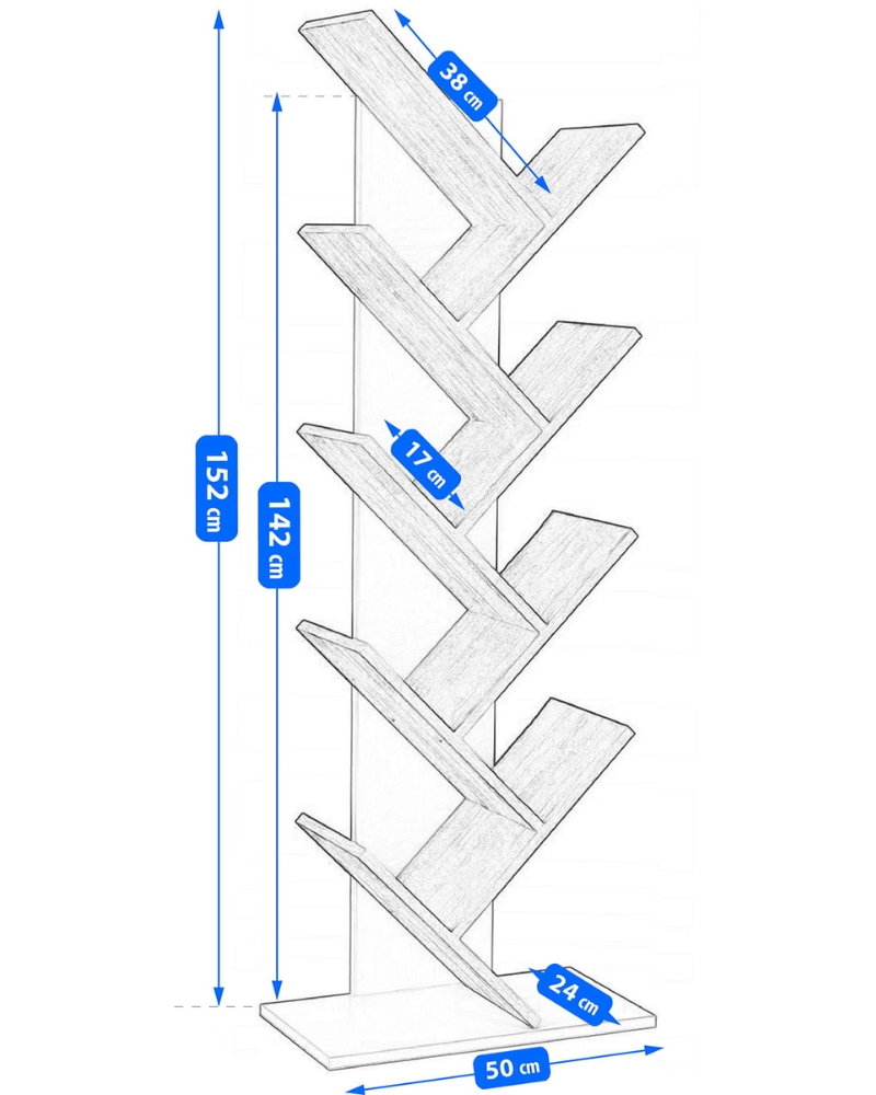 Cele 8 rafturi vă oferă suficient spațiu pentru a depozita cărți de diferite dimensiuni. Se va potrivi perfect într-o varietate de stiluri de design interior. Raftul pentru cărți are o bază stabilă pentru a se asigura că poate fi amplasat în siguranță în orice cameră