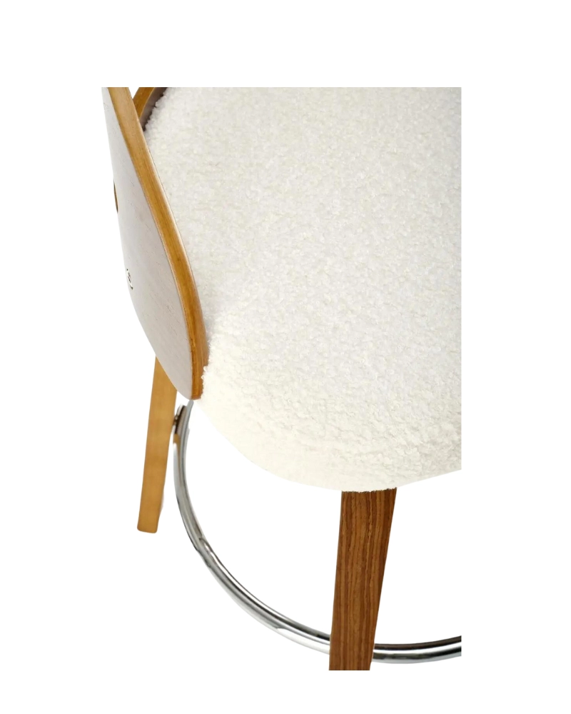 Gratuit pentru comenzile de peste 1000 lei.Scaun semibar elegant H-110 de la compania poloneză Halmar, cu mecanism rotitor, cu picioare din metalice. SȘezutul său confortabil, cu design original, este realizat din țesătură cu textură bouclé. Scaunul H-110 se va potrivi perfect în atmosfera oricărei cafenele sau baruri, oferind interiorului un plus de armonie.