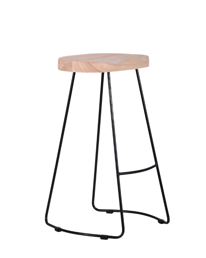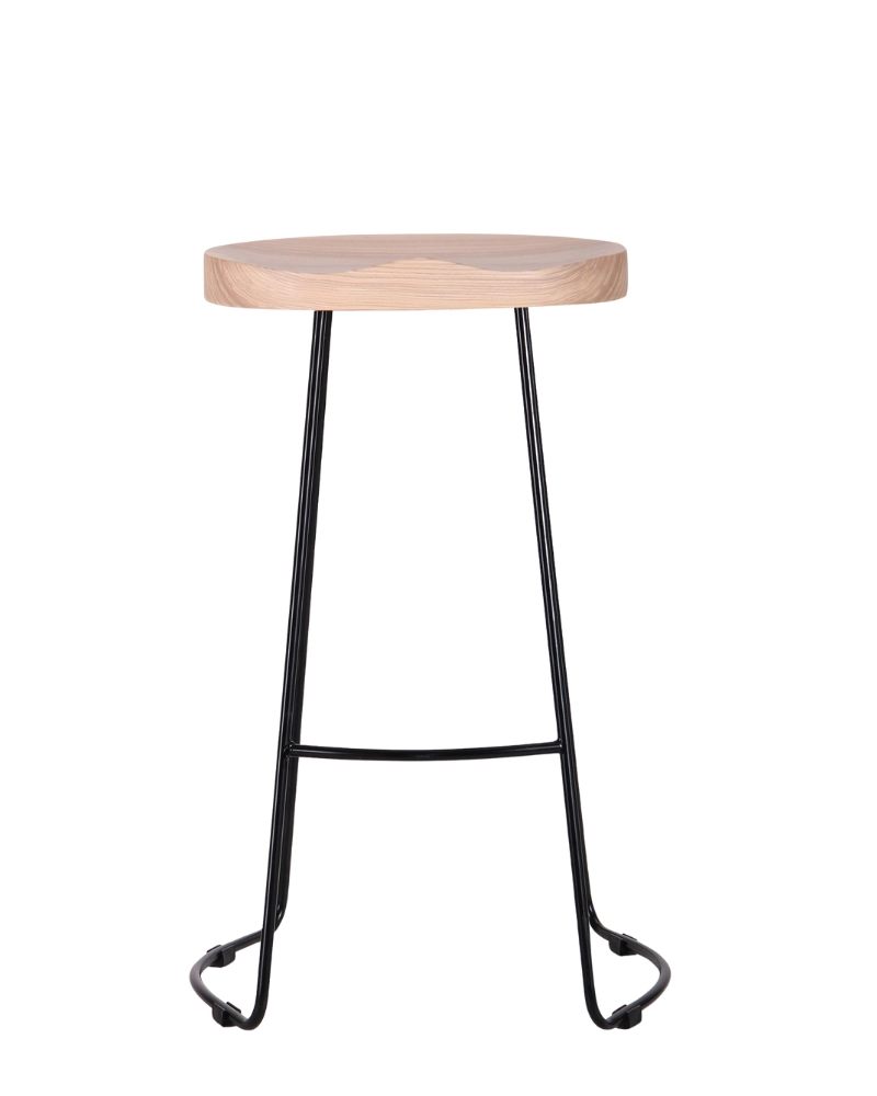 Scaunul de bar JAM este perfect pentru un interier în stil Loft. Scaunul are șezutul confecționat din lemn masiv, iar piciorul metalic este acoperit cu vopsea pulbere de culoare neagră.Piciorul scaunului este dotat cu o bară transversală pentru suportul picioareor și crapodine pentru a proteja pardoseaua de deteriorare.