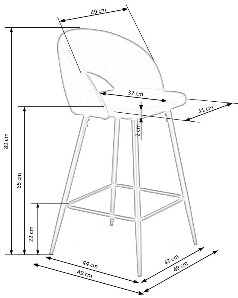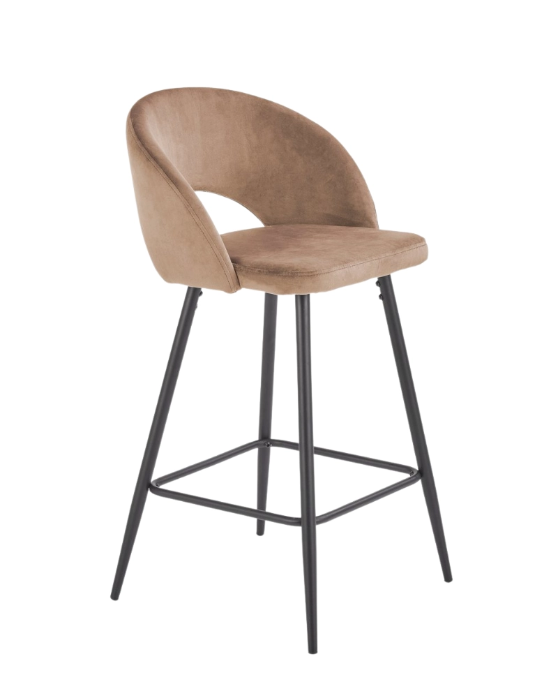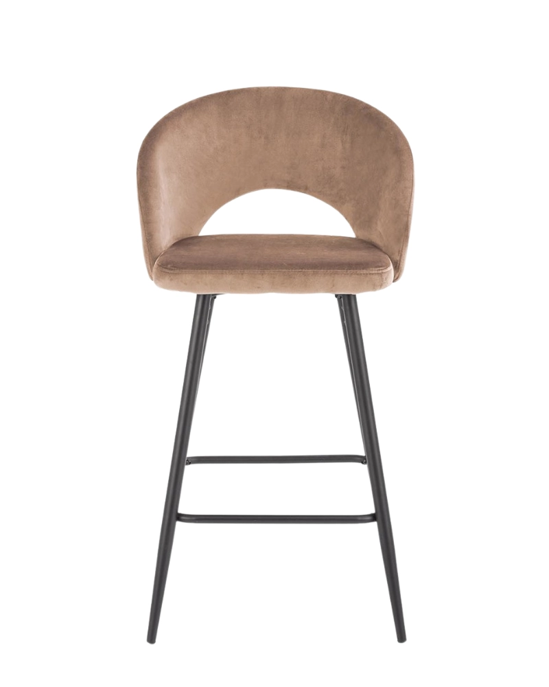 Scaunul semibar H-96 este tapețat cu catifea. Picioarele scaunului sunt confecționate din metal acoperit cu vopsea pulbere de culoare neagră. O bună completare a unei mese semibar.