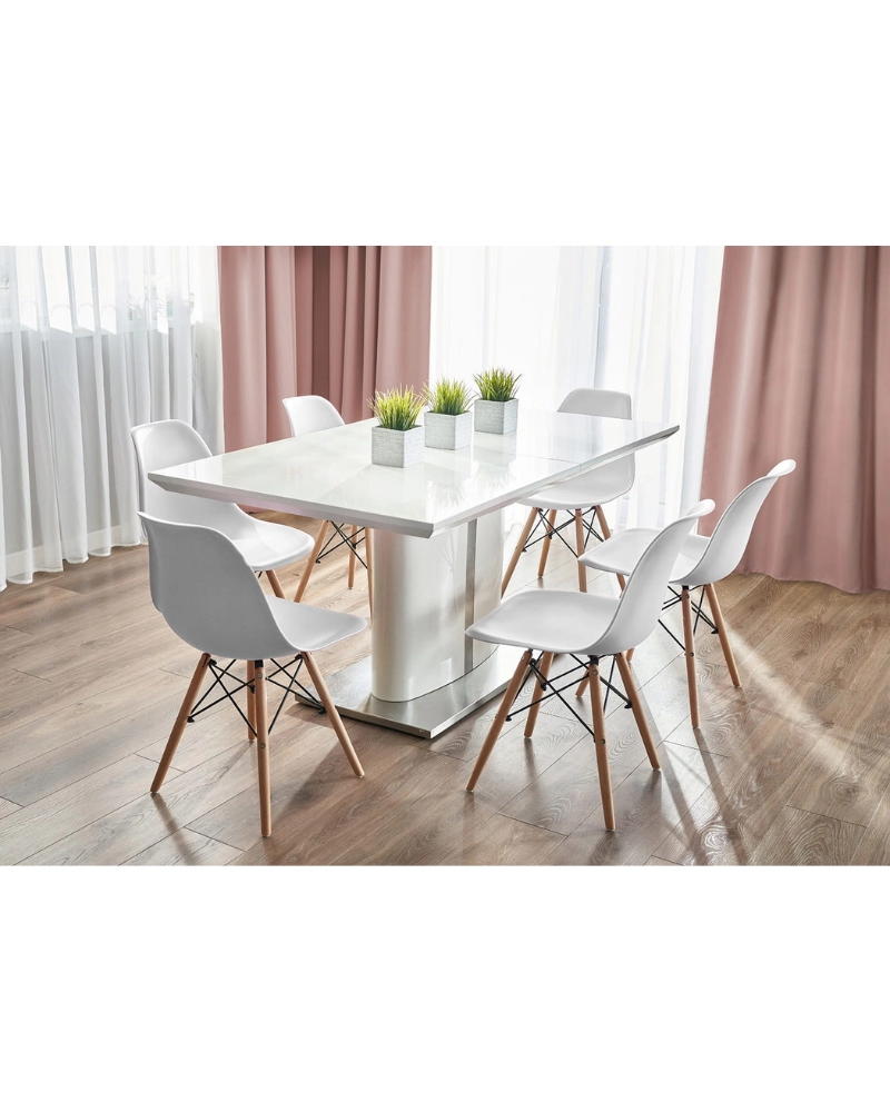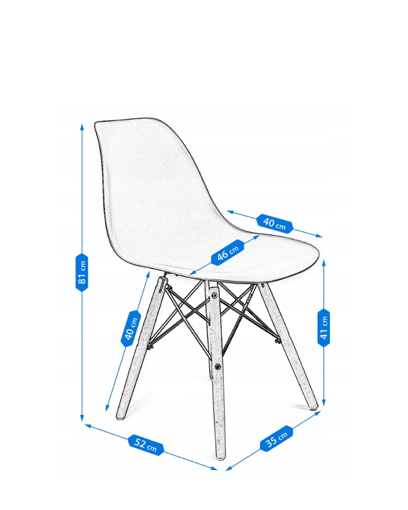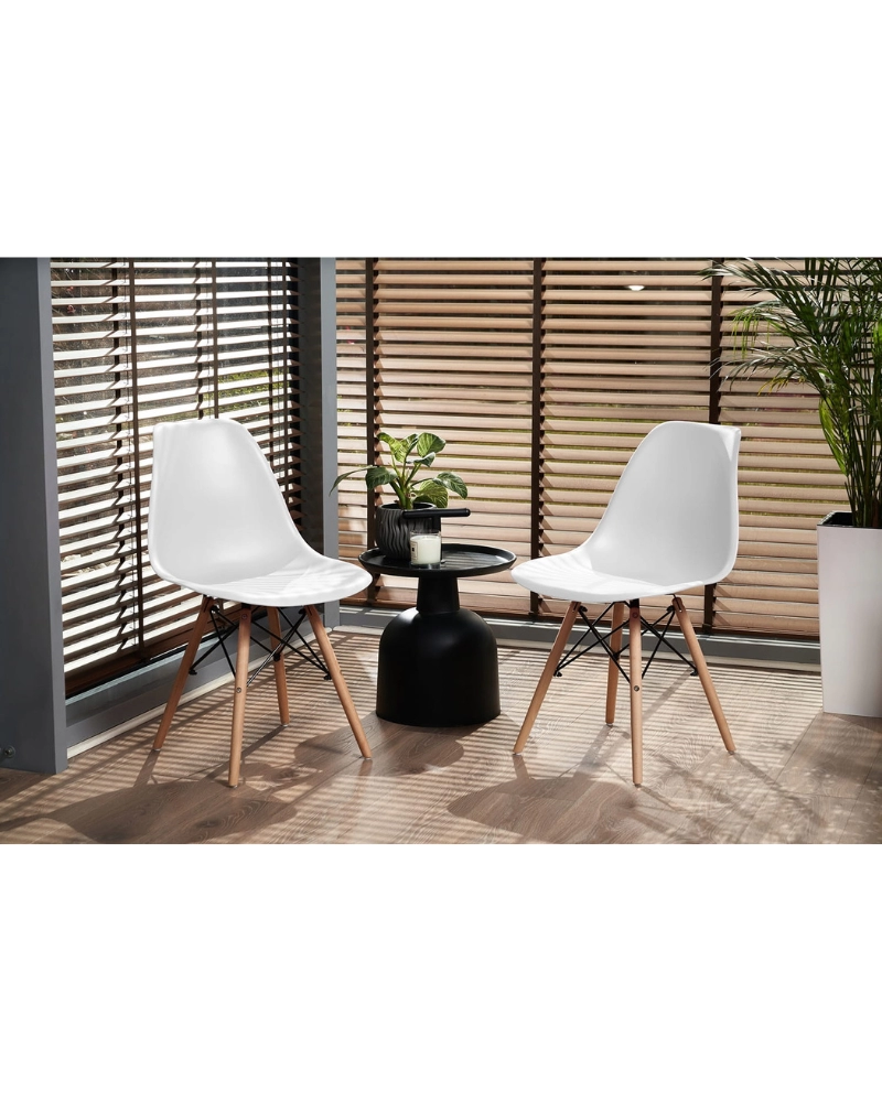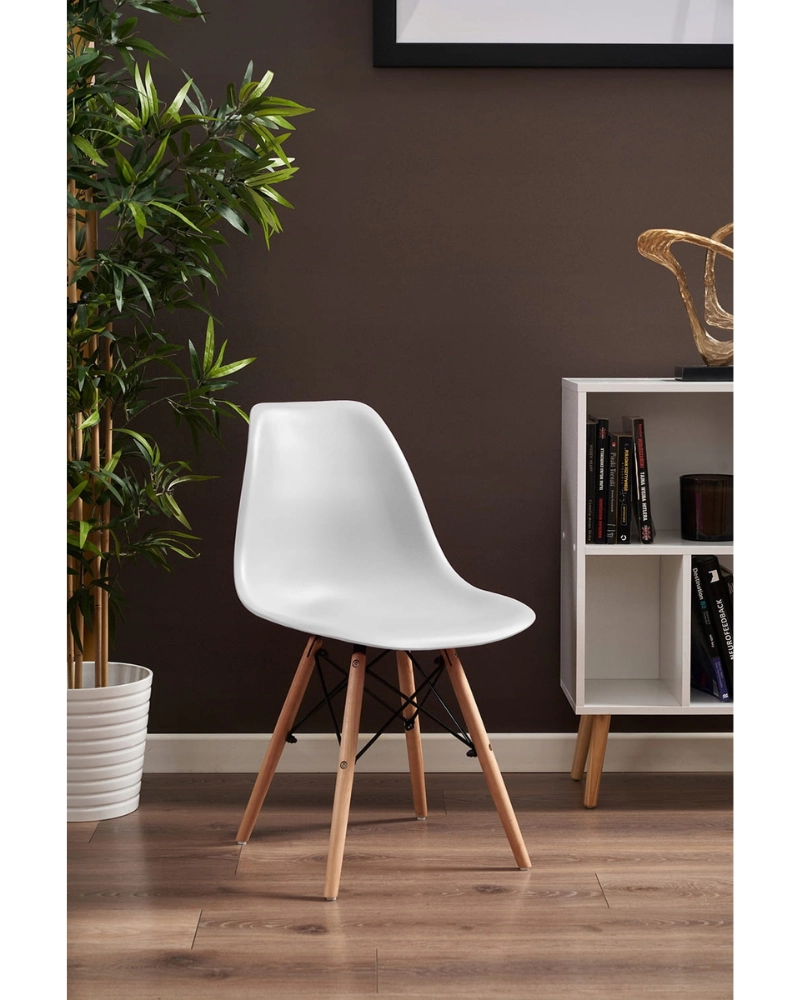 Șezutul este din polipropilenă perfect conturată, iar picioarele sunt realizate din lemn masiv natural de fag - oferind rezistență și stabilitate în timpul utilizării, în plus, îmbinările negre întăresc întregul cadru și sunt și decorative.