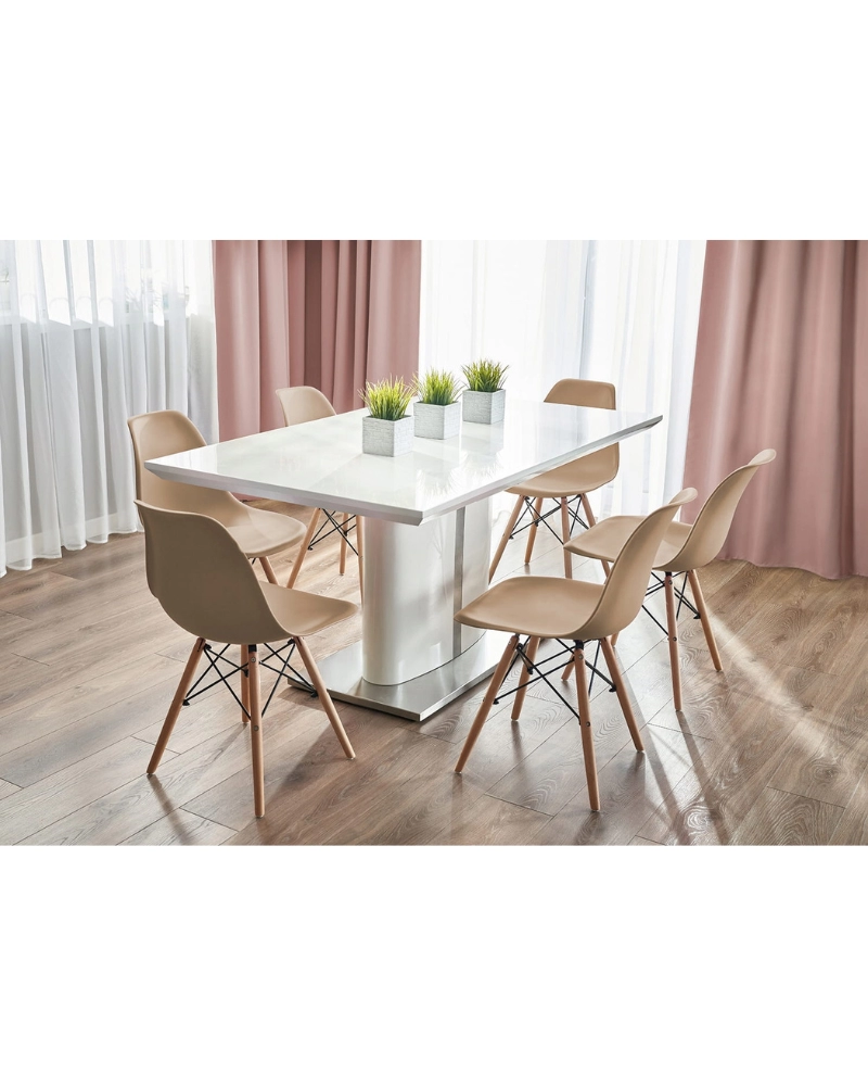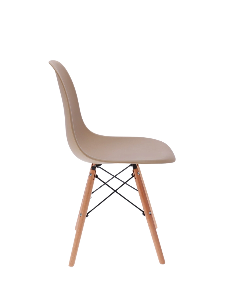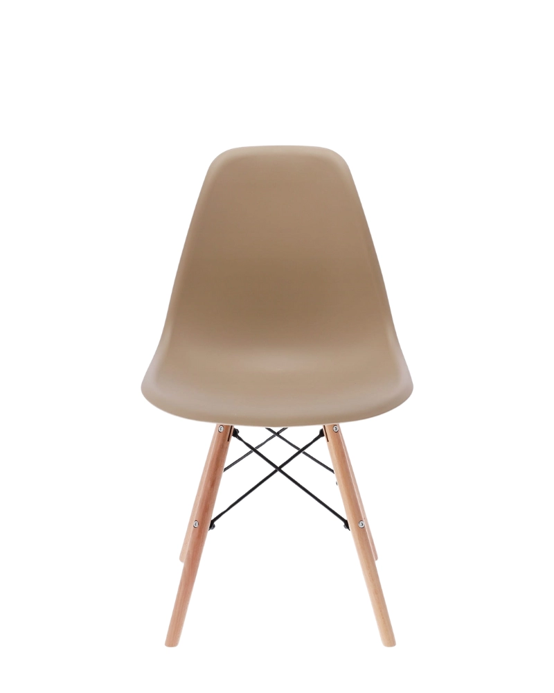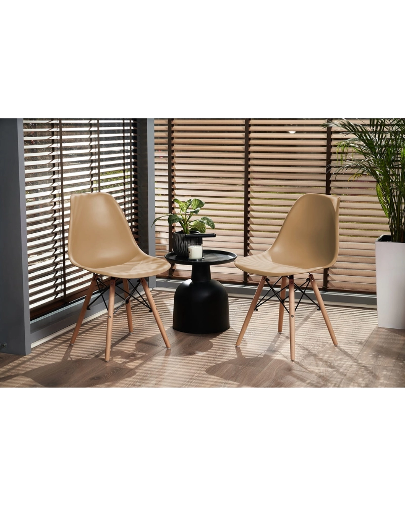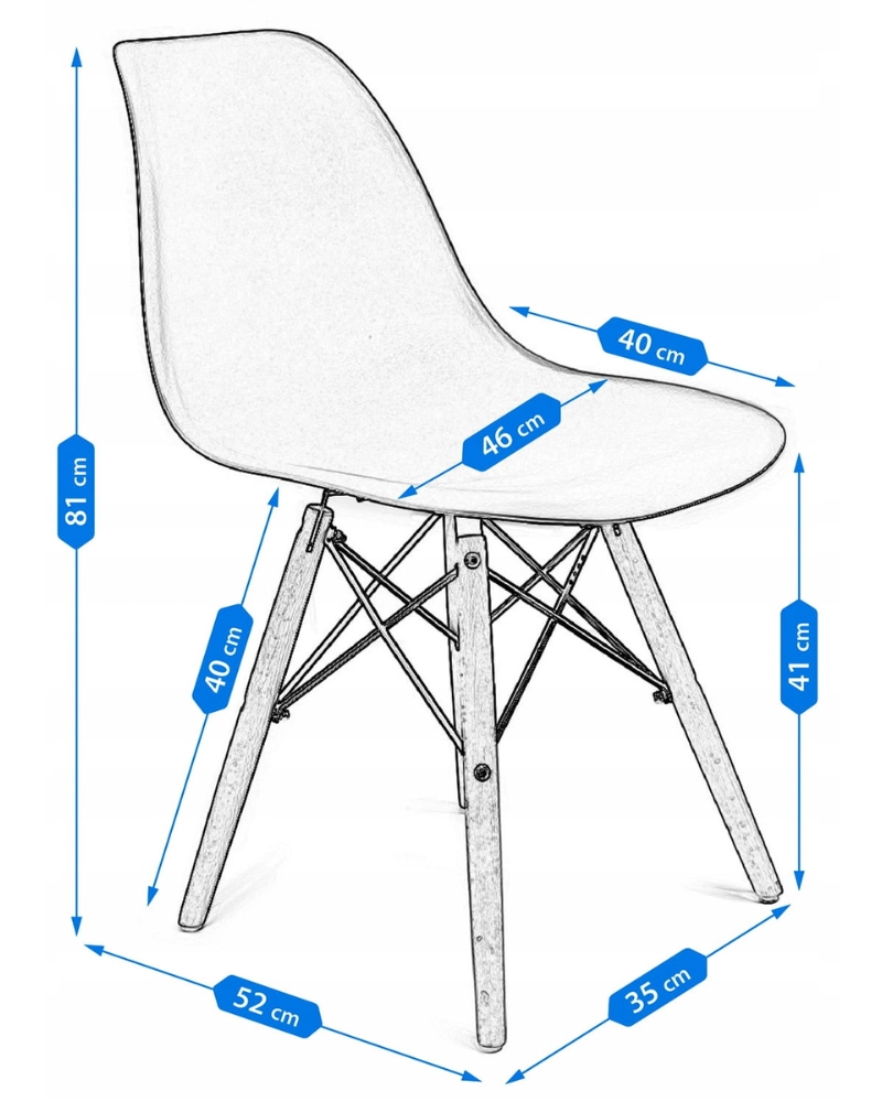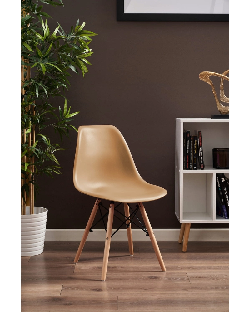 Șezutul este din polipropilenă perfect conturată, iar picioarele sunt realizate din lemn masiv natural de fag - oferind rezistență și stabilitate în timpul utilizării, în plus, îmbinările negre întăresc întregul cadru și sunt și decorative.