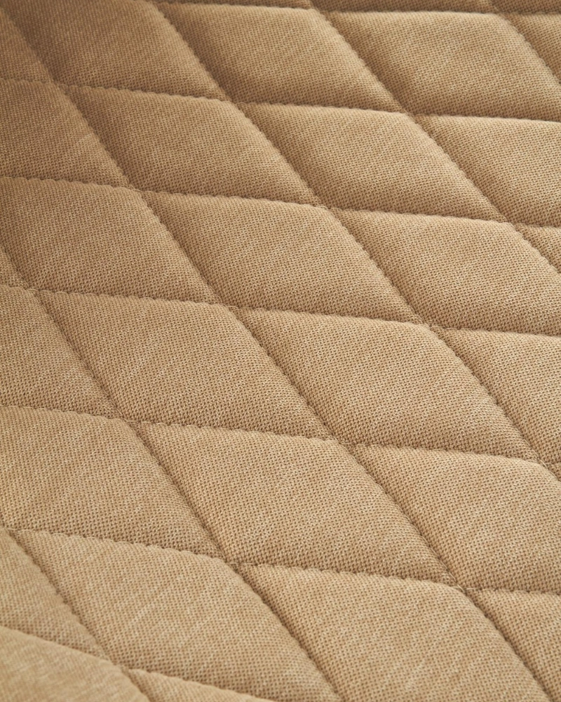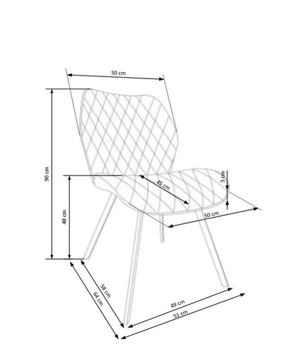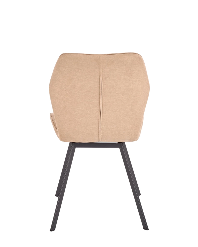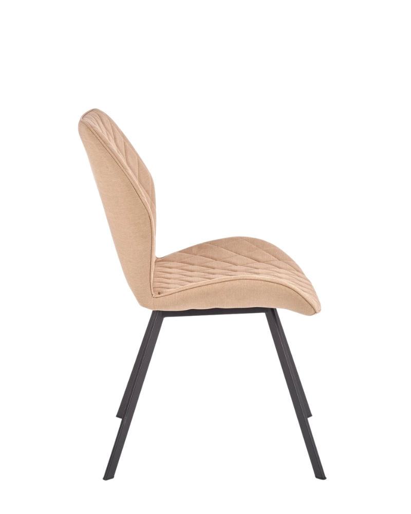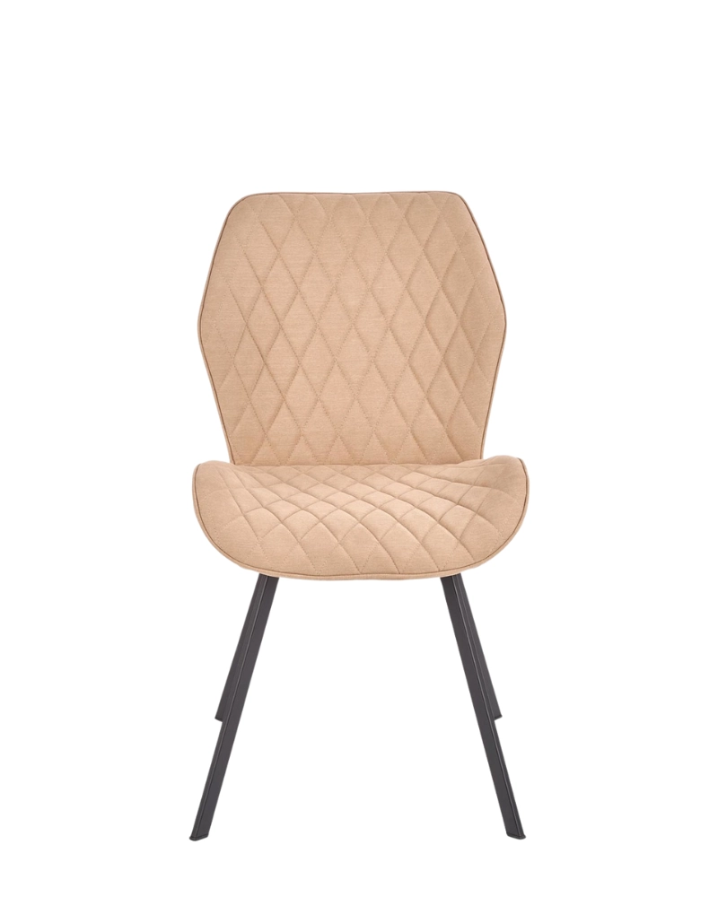 Scaunul este tapițat în țesătură durabilă. Șezutul este decorat cu cusături în formă de romb, ceea ce conferă scaunului un volum vizual și lejeritate. Baza robustă și stabilă este realizată din metal.