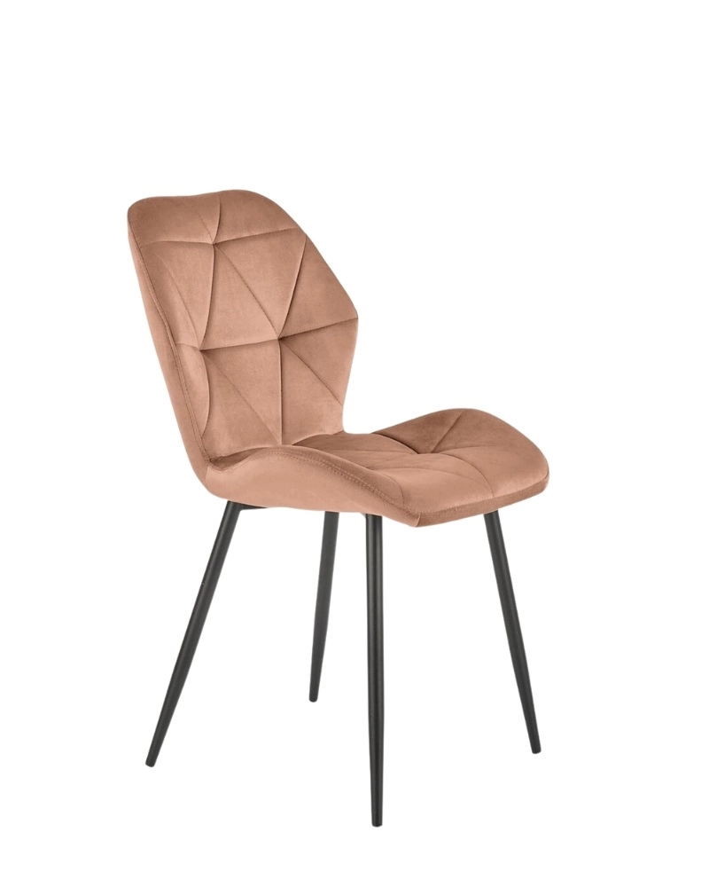 Scaunul K453 este un model elegant pentru livinguri moderne, cafenele și restaurante. Scaunul are cadru confecționat din metal vopsit, iar șezutul și spătarul sunt tapițate cu stofă - catifea.