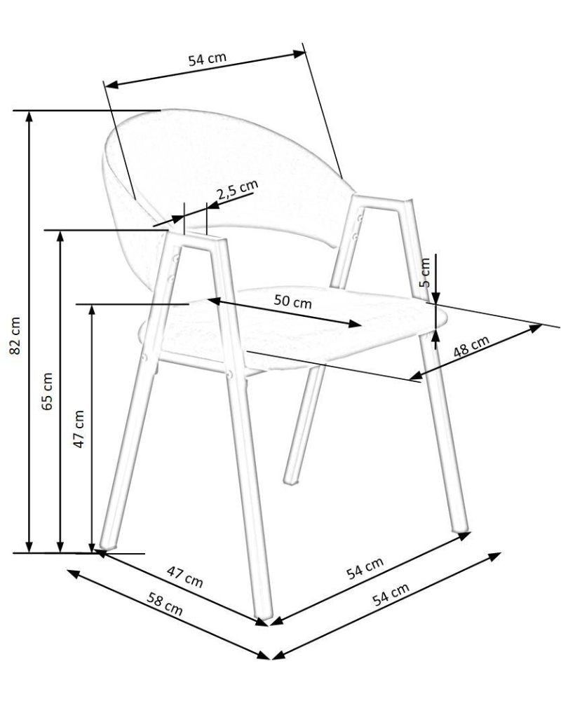 Înălțimea spătarului (cm) 82