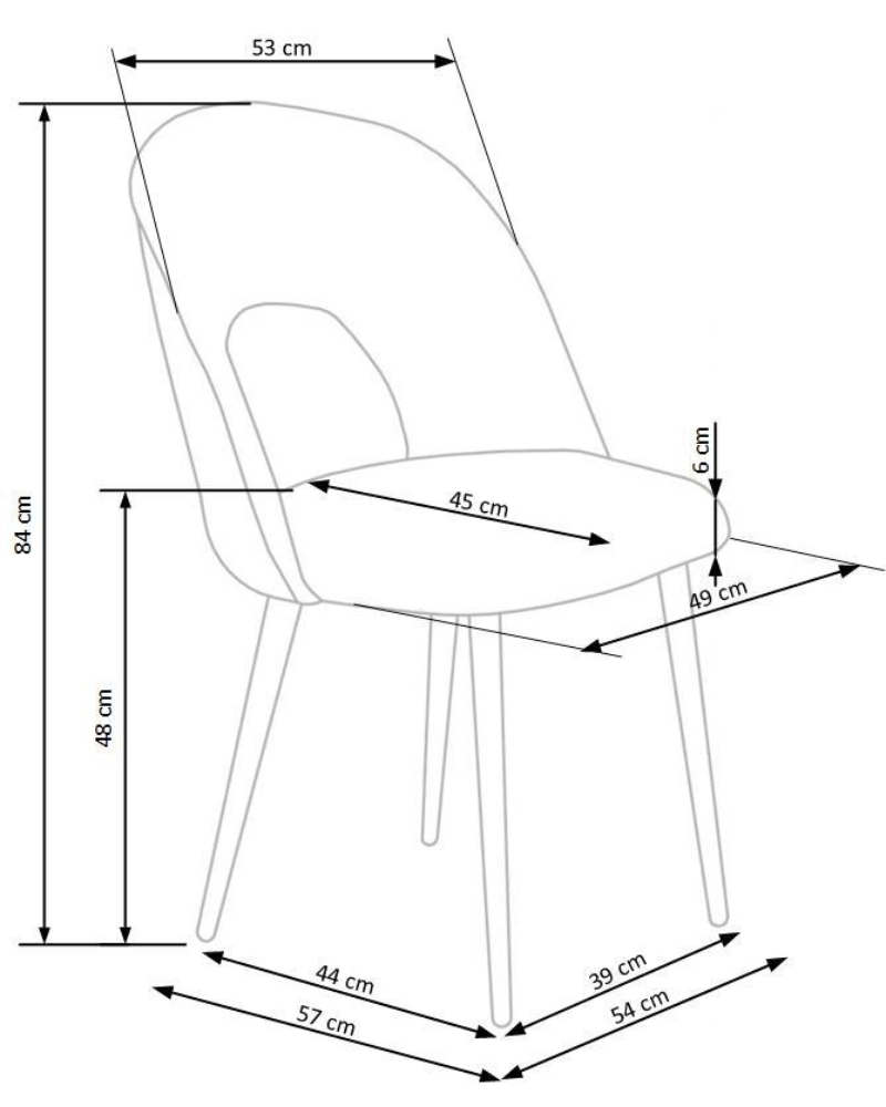 Scaun K-384 Halmar pe cadru metalic - sezutul si spatarul sunt din tesatura de catifea. Cadru din oțel vopsit negru.