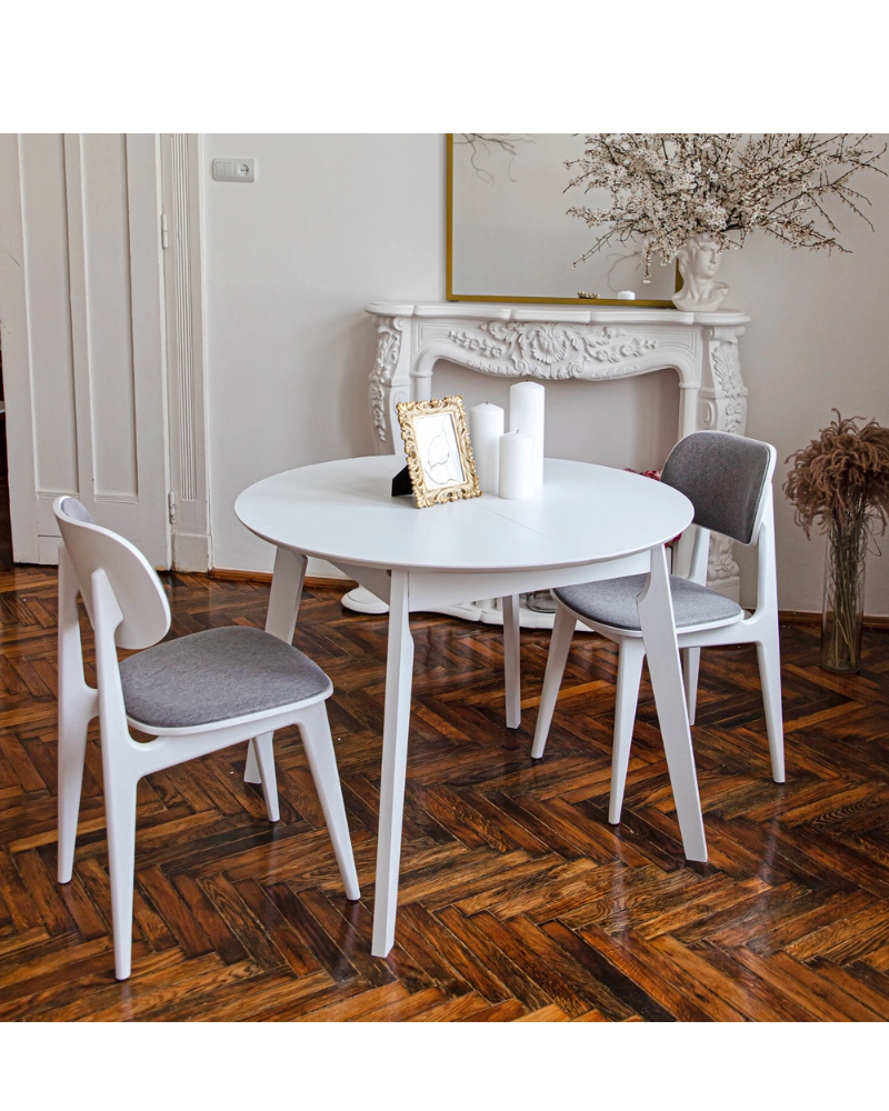 Gratuit pentru comenzile de peste 1000 lei.Scaunul LULA are un design modern și minimalist, perfect pentru a adăuga o notă de eleganță oricărei încăperi. Structura sa solidă este vopsită în alb, oferind o senzație de spațiu și luminozitate.