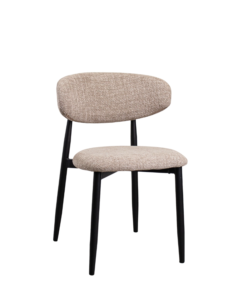 Șezutul și spătarul, cu o formă ergonomică și contururi rotunjite, sunt tapițate cu o țesătură de calitate superioară, de culoare bej-deschis, cu o textură discretă, dar vizibilă, tip buclă. Această combinație de texturi și culori creează un contrast vizual plăcut și elegant. Scaunul Meridian oferă un confort sporit, fiind ideal pentru utilizare zilnică în zona de dining, la birou sau ca o piesă de accent într-un spațiu de lectură. Este alegerea perfectă pentru cei care apreciază designul funcțional și materialele durabile.