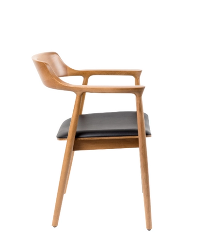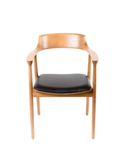 Gratuit pentru comenzile de peste 1000 lei.Scaun modern cu cotiere si picioare din lemn. Tapiteria este realizata din piele ecologica de inalta calitate. Cadrul din lemn se învârte în jurul spatelui și trece ușor de la cotiere la picioare. Scaunul larg oferă o potrivire confortabilă și confort.