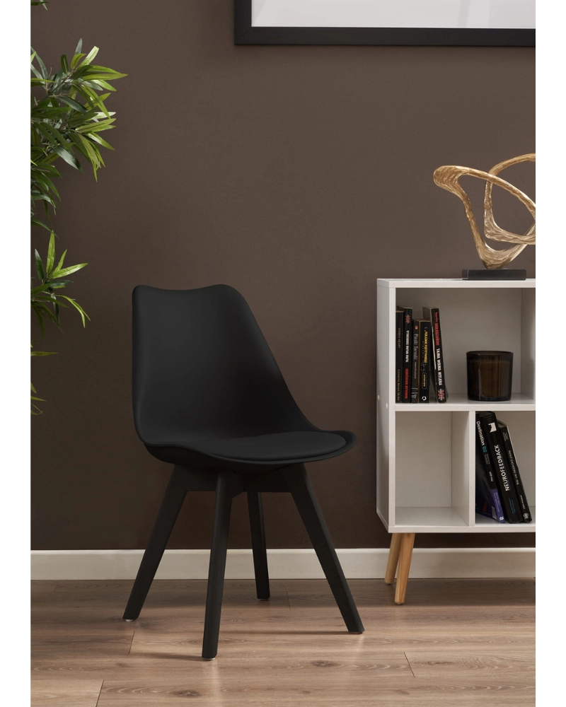 Are un spătar perfect conturat, care, combinat cu o pernă moale pe scaun, asigură un confort deosebit. Picioarele din lemn de fag asigură stabilitate și durabilitate. Scaunul este foarte practic și funcțional.