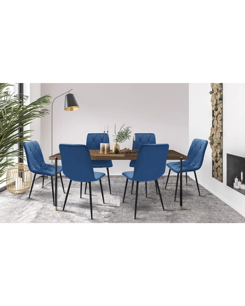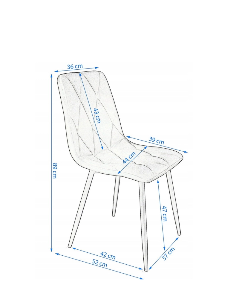 Scaunul este tapițat cu catifea și matlasat pe interior cu cusături regulate în formă de diamant. Picioarele înalte și subțiri de culoare neagră arată foarte chic și garantează o stabilitate perfectă.